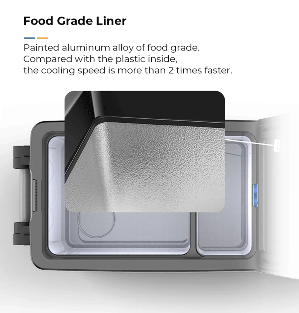 【Food Grade Liner】 Painted aluminum alloy of food grade. Compared with the plastic inside, the cooling speed is more than 2 times faster.
