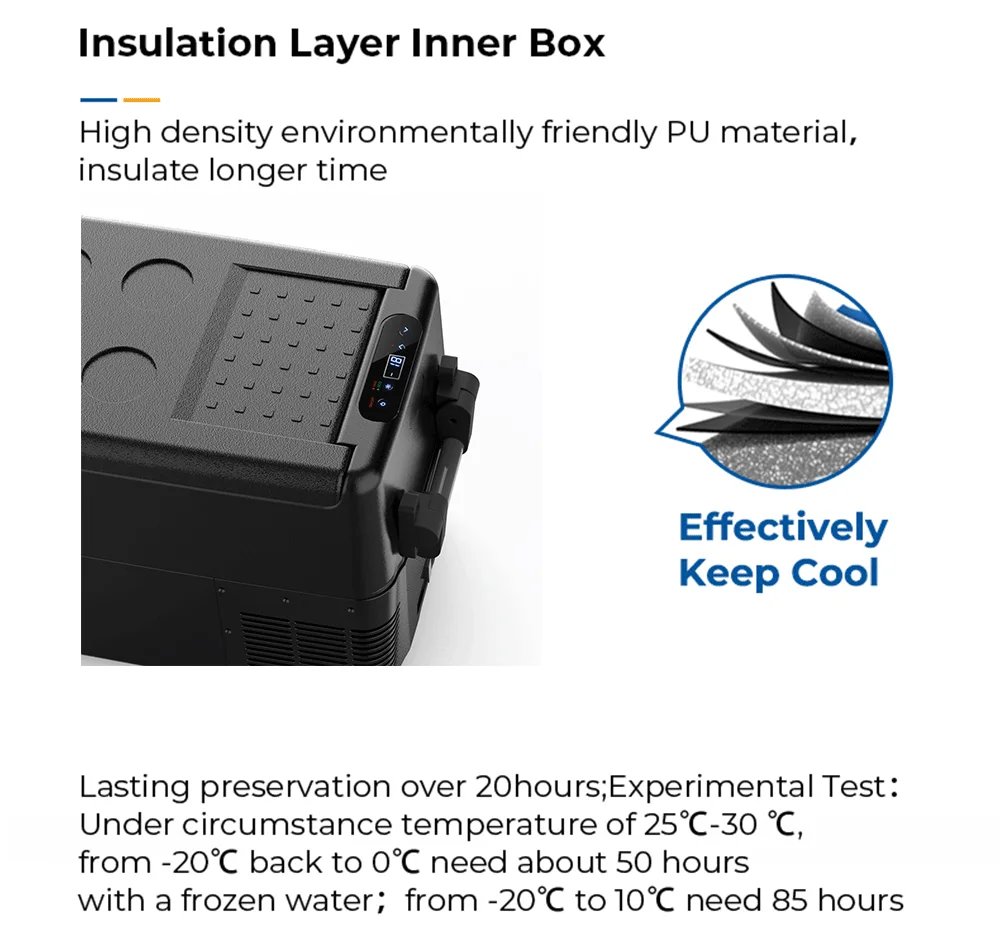 【Intelligence Temperature-controlled】German Converter technique,Stop cooling when the preset temperature is reached,Last over 8 hours after turn off the cooler