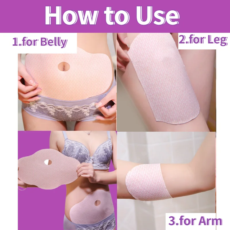 3. Place the wraps on the area gently (abdomen, thigh, hip, upper arm)