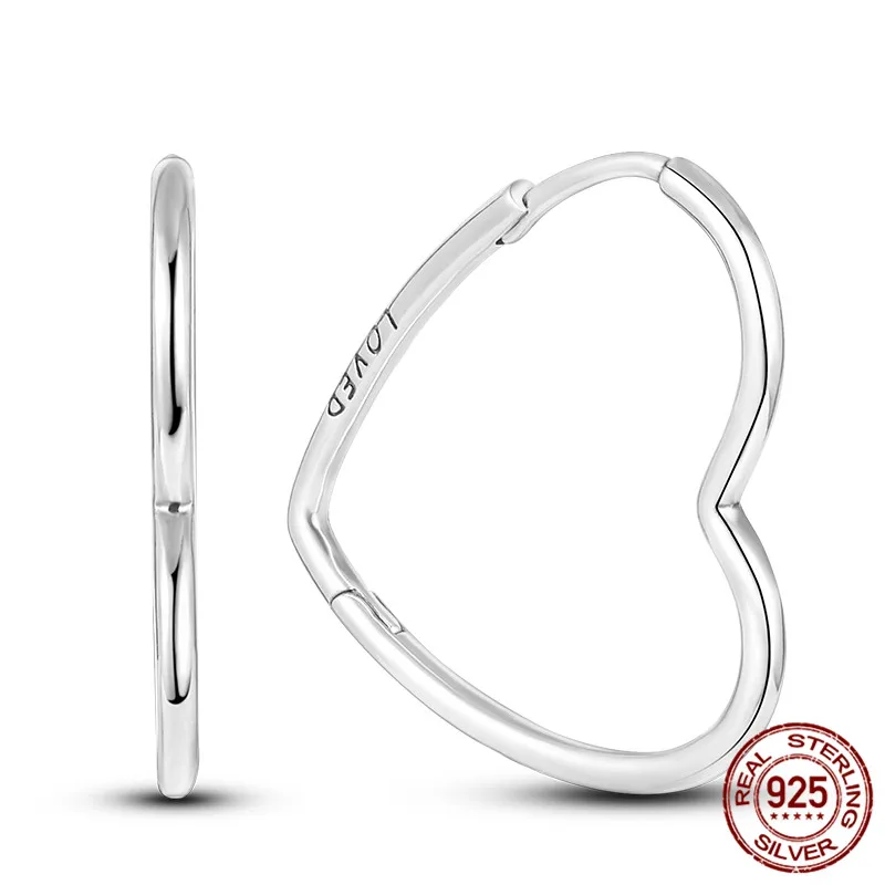Silver Earring 925 Sterling Silver Asymmetrical Heart Hoop Earrings for Women Jewelry Gift For Girlfriend Wife