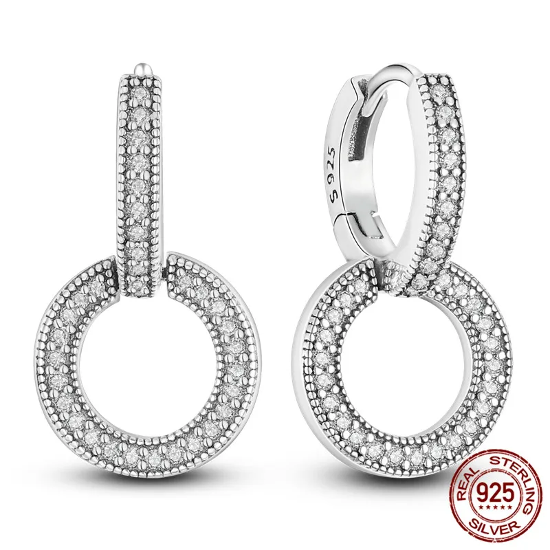 925 Silver Charm Double Hoop Earrings Fit Original Brand Charms Diy Fine Jewelry Women Gift For Fine Earring Making quantity