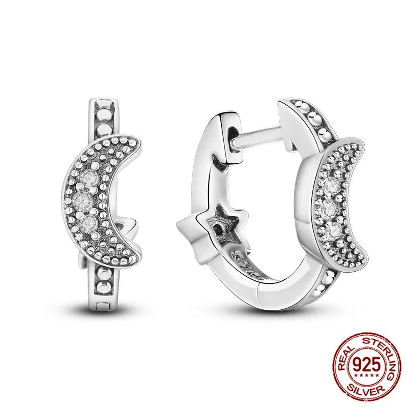 CANNER Hoop Earrings Black Panther Moon Star Cross 925 Sterling Silver CZ Huggie Earring For Women Aros Kiwi Pendientes Brincos