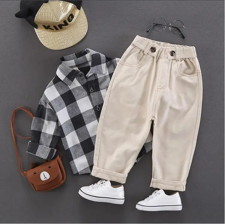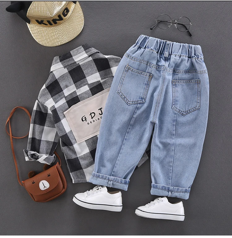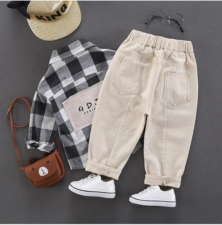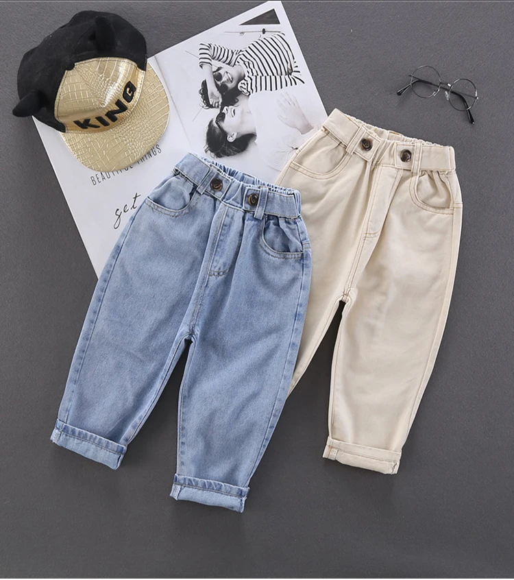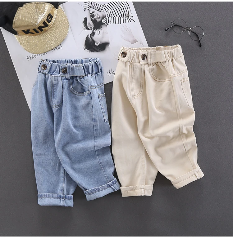Baby Boys Jeans Pants Kids Clothes Cotton Casual Children Trousers Denim Boys Clothes 2-6Year Blue and Beige