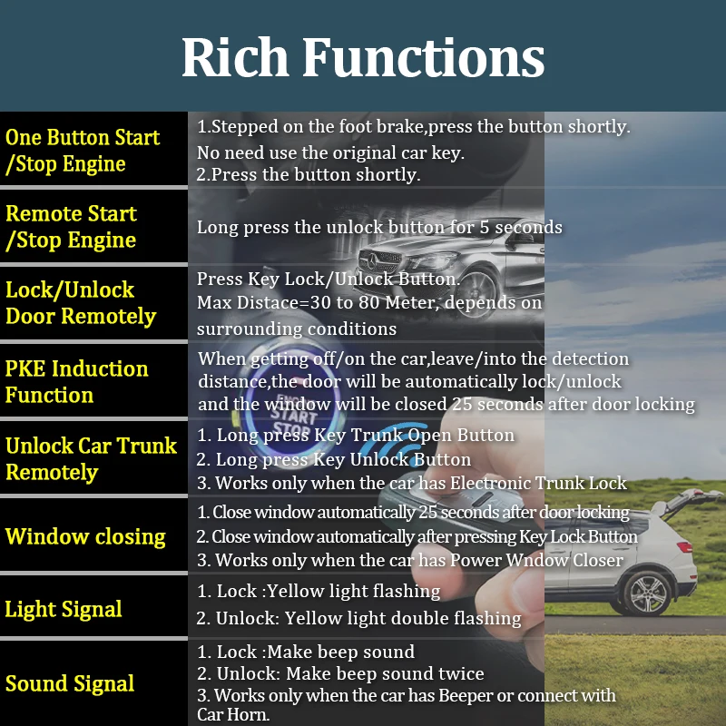 Car Alarm Remote Control PKE Car Keyless Entry Engine Start Alarm System Push Button Remote Starter Stop Auto