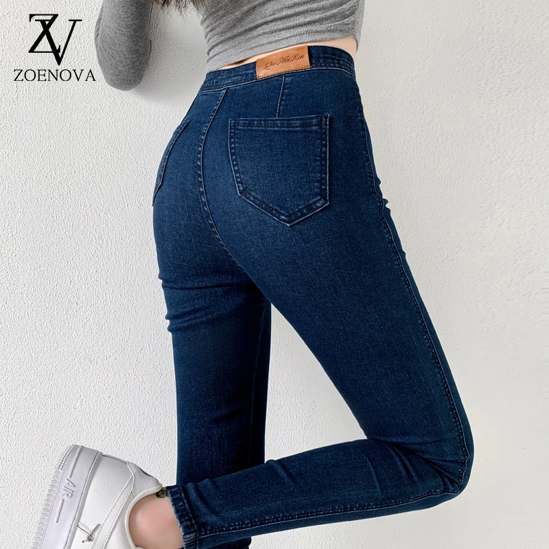 Classic Blue Jeans Women High Waisted Super Elastic Aesthetic Fashion Capris Urban Femme Denim Pants Streetwear Trendy
