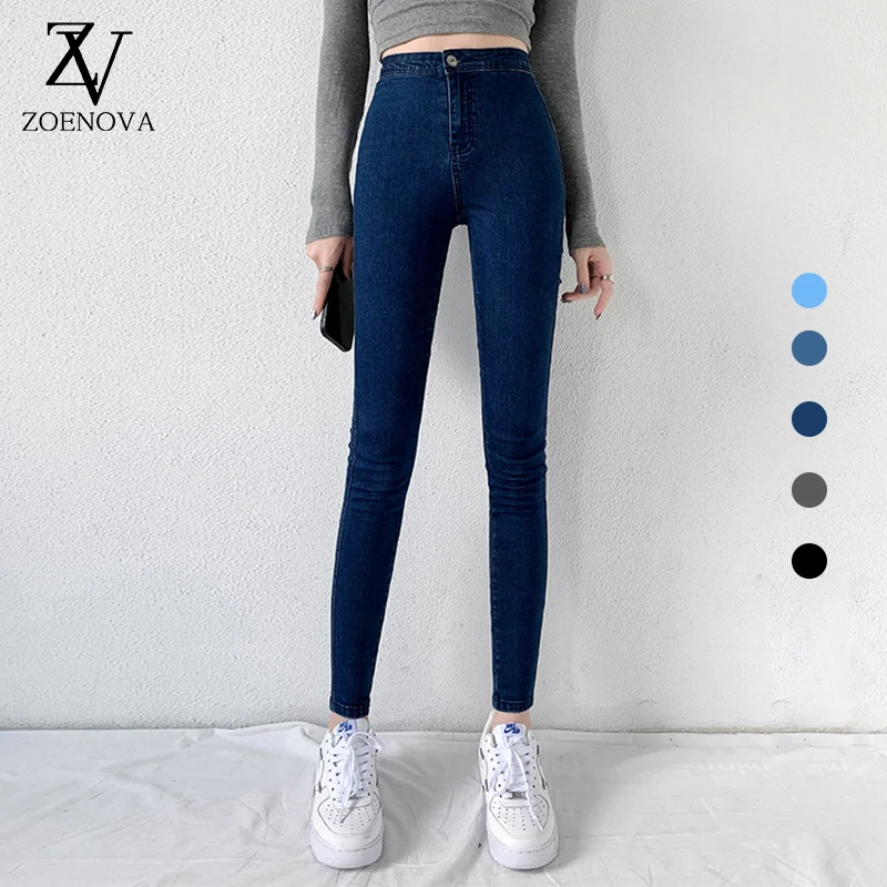 Women Solid Color Stretchy Jeans Casual High Waist Skinny Pencil Pants Fashion Slim Butt Lift Legging Black Trousers Plus Size