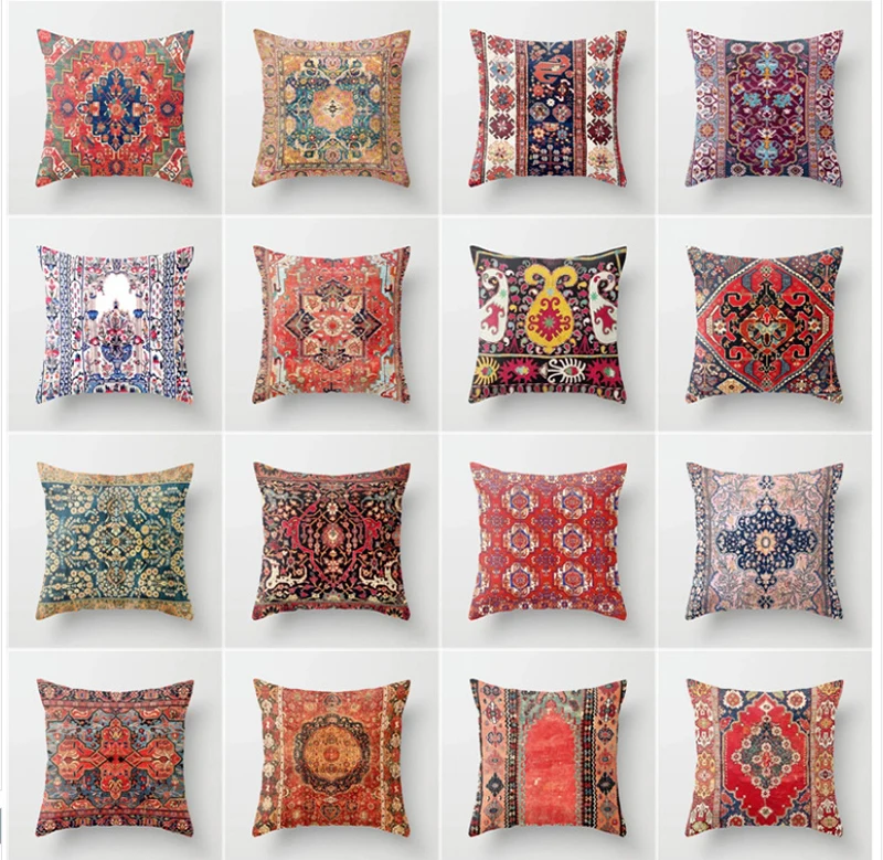 Home Decoration Cushion Cover Ethnic Style Canvas Square Embroidery Pillow Cover 45x45cm for Sofa Bed