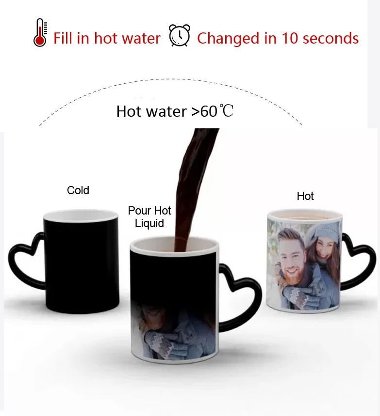 DIY Customized 350ML 12oz Ceramic Magic Mug Print Picture Photo LOGO Text Hot Water Change Color Sublimation Print Hot Transfer