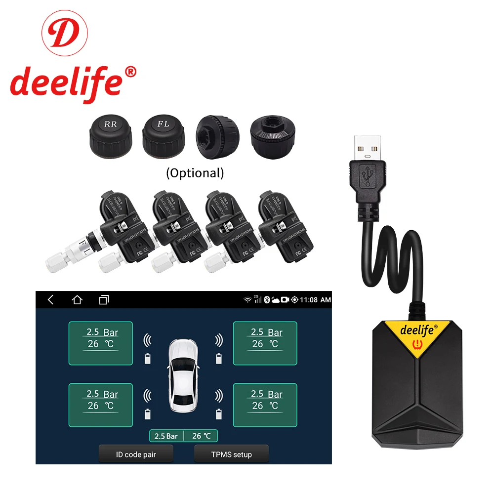 Deelife Android TPMS for Car Radio DVD Player Tire Pressure Monitoring System Spare Tyre Internal External Sensor USB TMPS