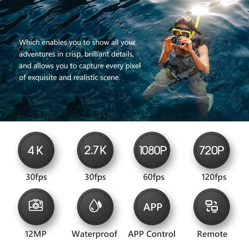 * Multiple video recording formats: 4K/2.7K/1080p/720P