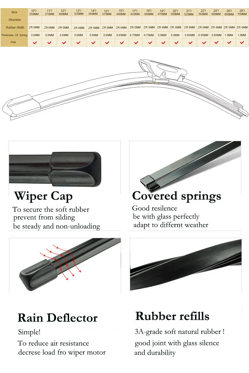 Composition: 2Pcs (Passenger Side and Driver Side)+1 PC Rear Wiper