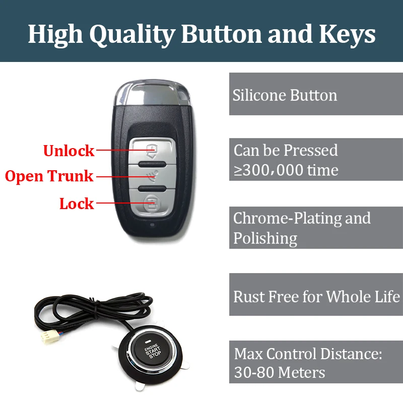 Car Alarm Remote Control PKE Car Keyless Entry Engine Start Alarm System Push Button Remote Starter Stop Auto