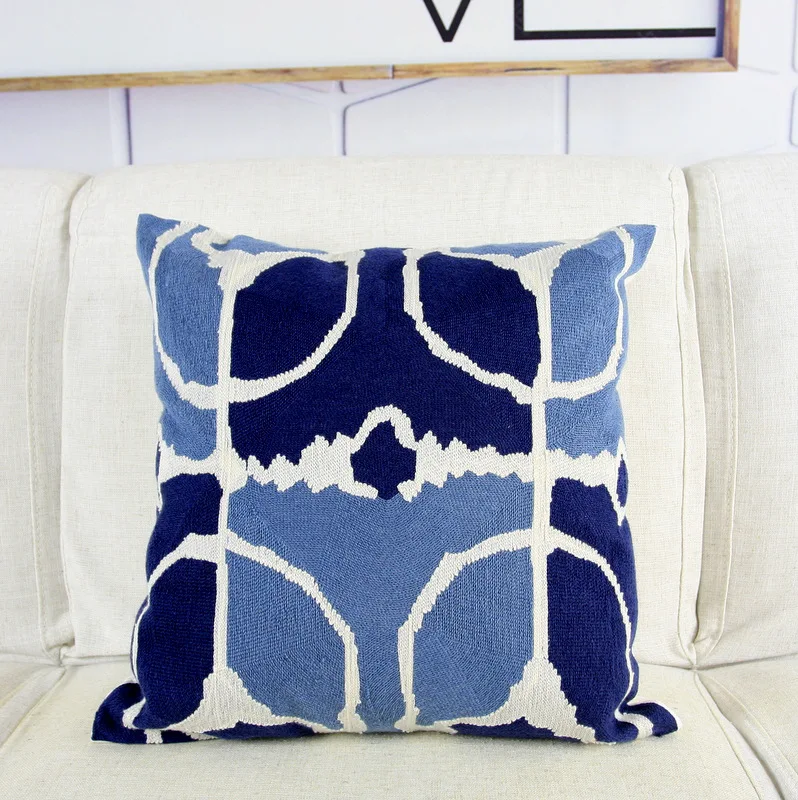 Home Decor Embroidered Cushion Cover Navy/White Pillowcase Canvas Cotton Square Embroidery Pillow Cover 45x45cm