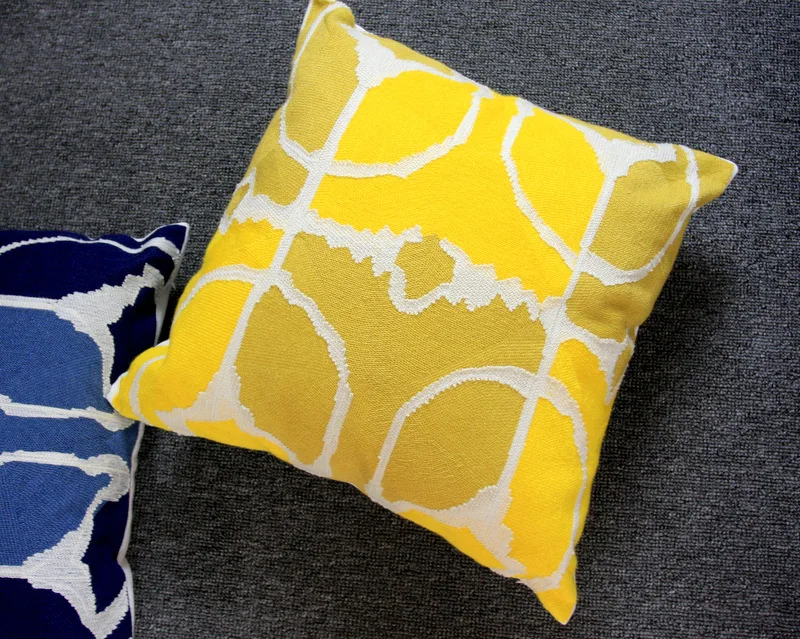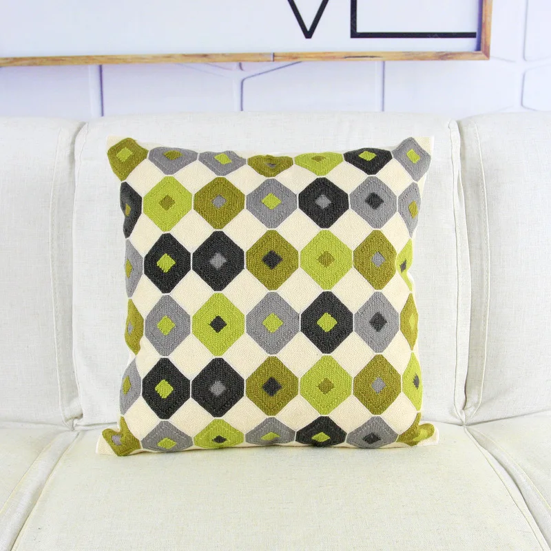 Home Decor Embroidered Cushion Cover Blue Yellow Green Abstract Geometric Canvas Cotton Square Embroidery Pillow Cover 45x45cm quantity