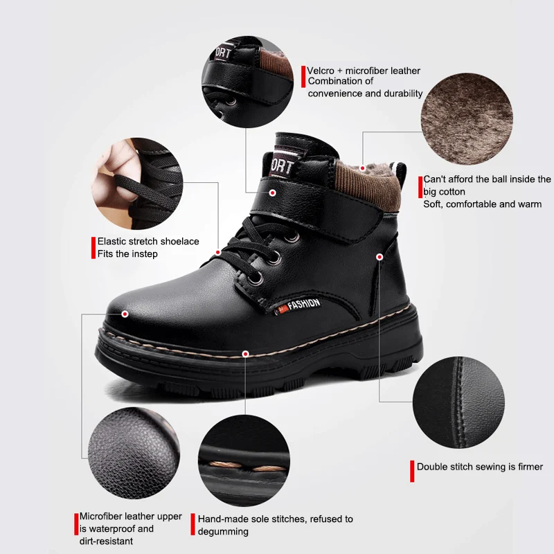 [High-quality materials]-These children’s shoes are made of waterproof synthetic leather uppers and breathable and comfortable textile linings to keep your feet warm and comfortable all day long.