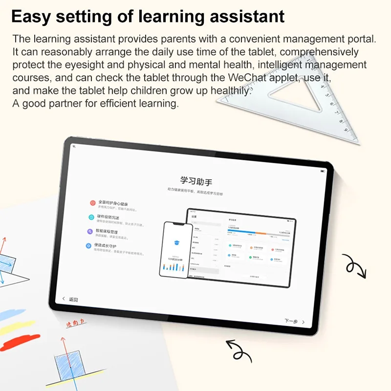The learning assistant provides parents with a convenient management portal that can reasonably arrange the daily use time of the tablet, comprehensively protect the eyesight and physical and mental health, intelligent management courses, and can check the tablet through the WeChat applet, use it, and make the tablet help children grow up healthily A good partner for efficient learning.