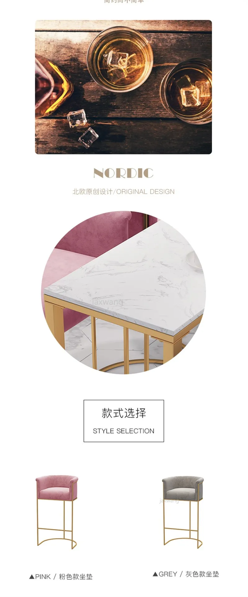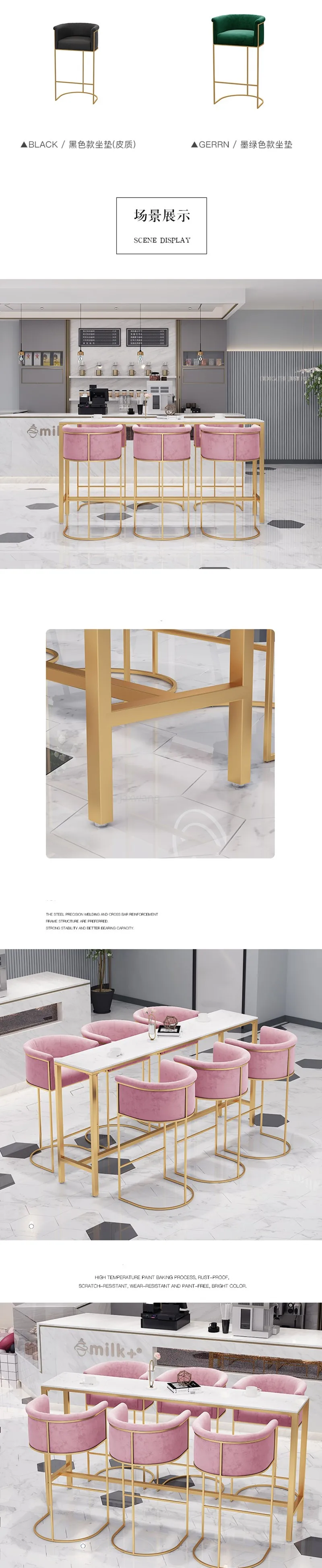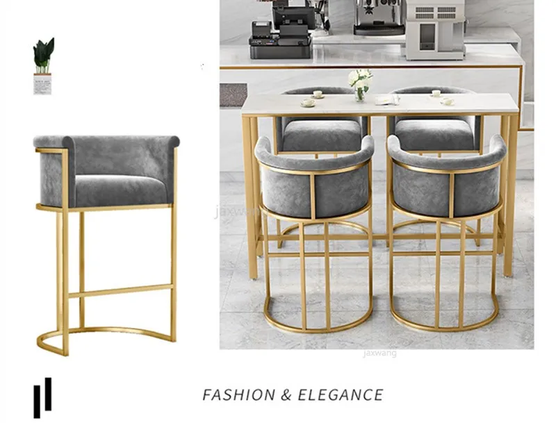 Nordic Iron Dining Room Bar Chair Modern Cafe High Bar Stool Golden Leisure Barstools Soft Backrest Household Furniture