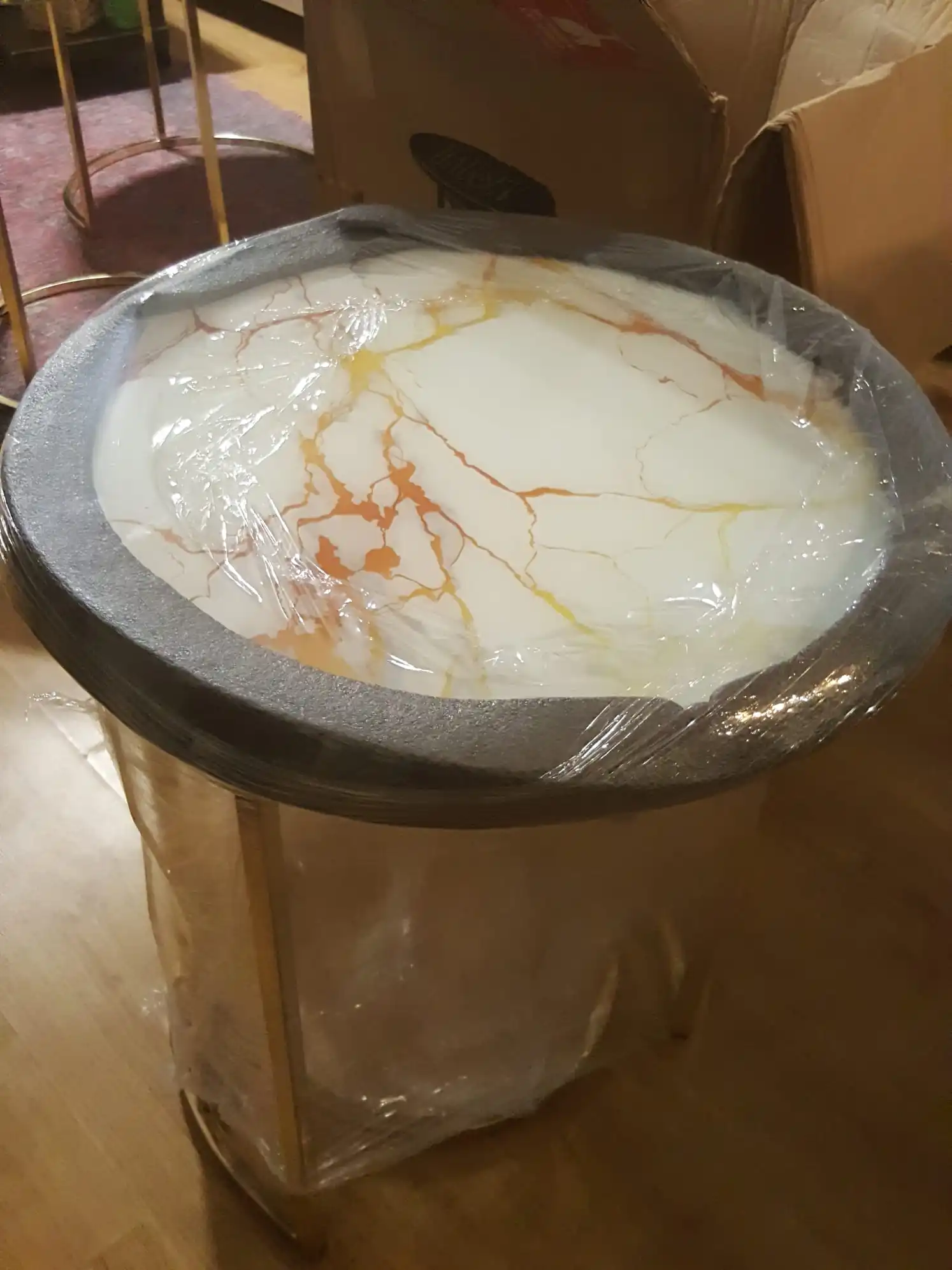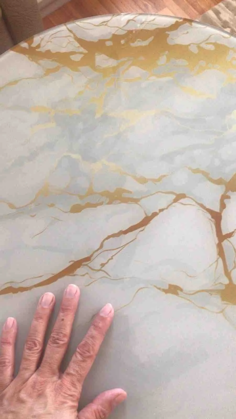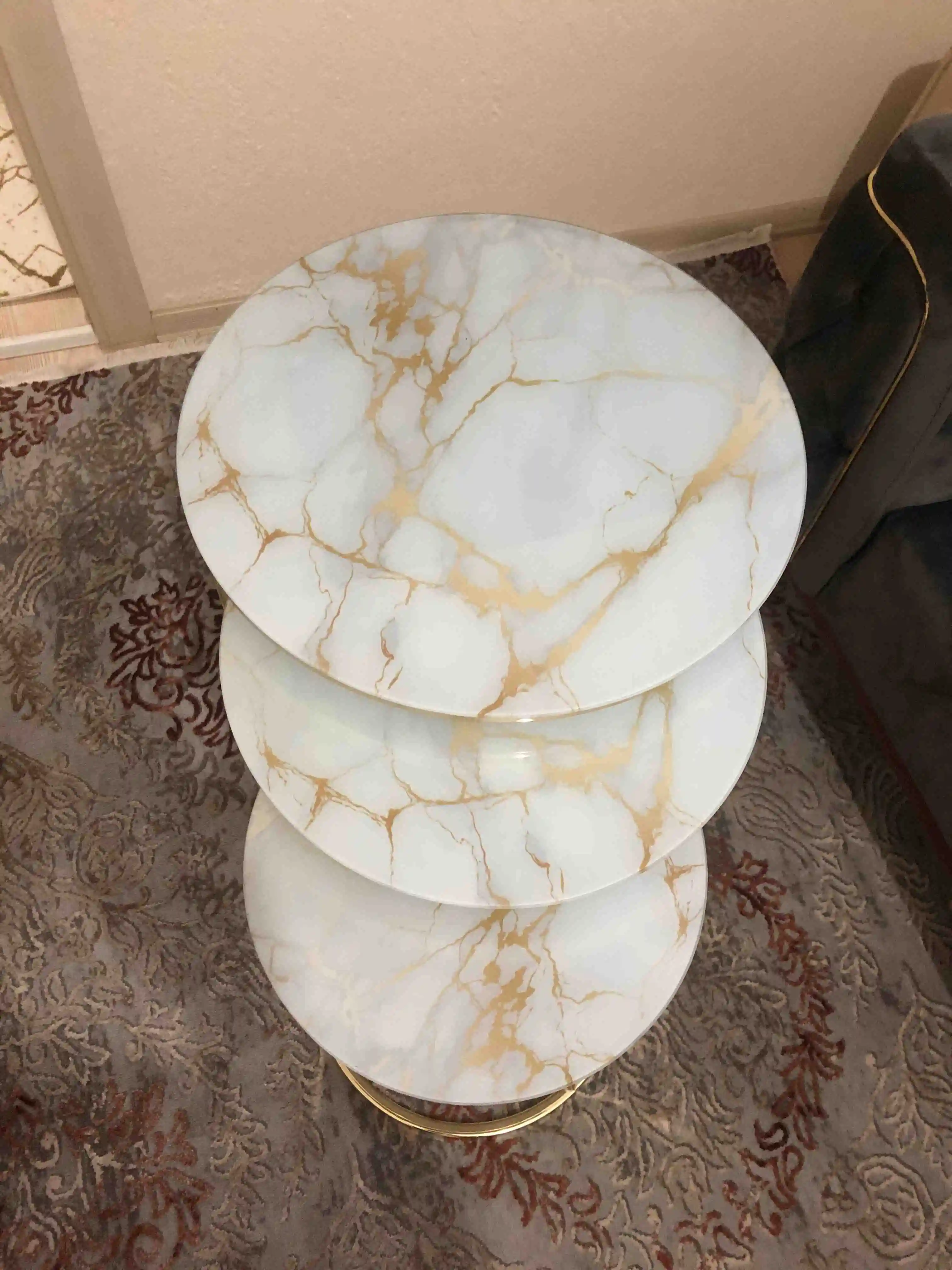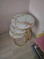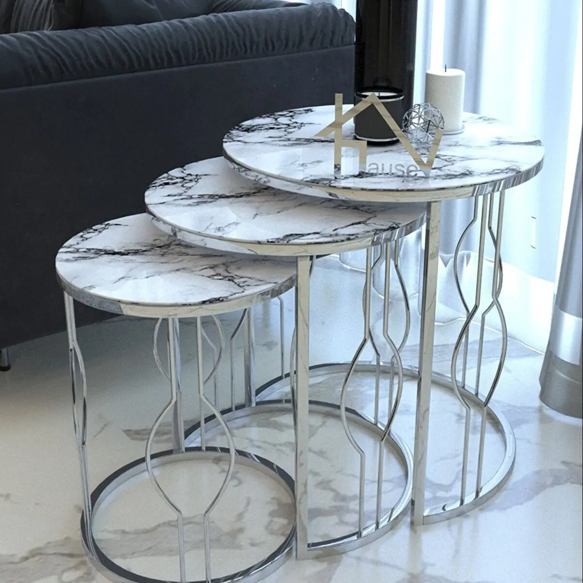 MODEL GOLD METAL NESTING TABLE UNBREAKABLE TEMPERED GLASS VEIN MARBLE