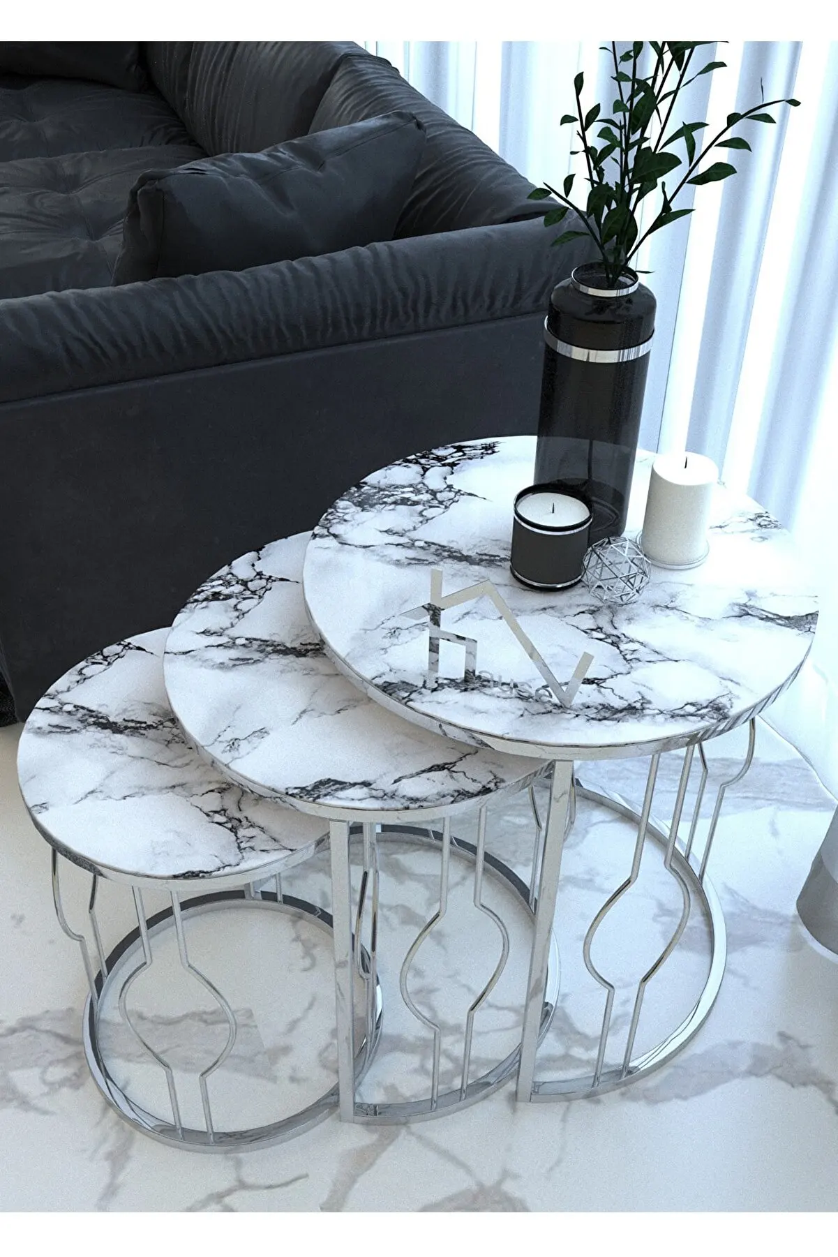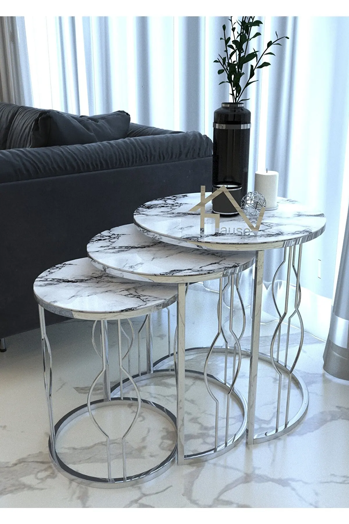 Metallic GOLD & SILVER color is a set of 3 metal nesting tables.