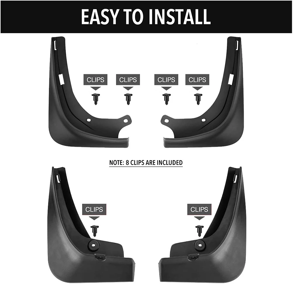 ✅ Package Content: 4x Mud Flaps, 10x clips, 1x installation instructions and all the necessary hardware for a quick and easy installation.