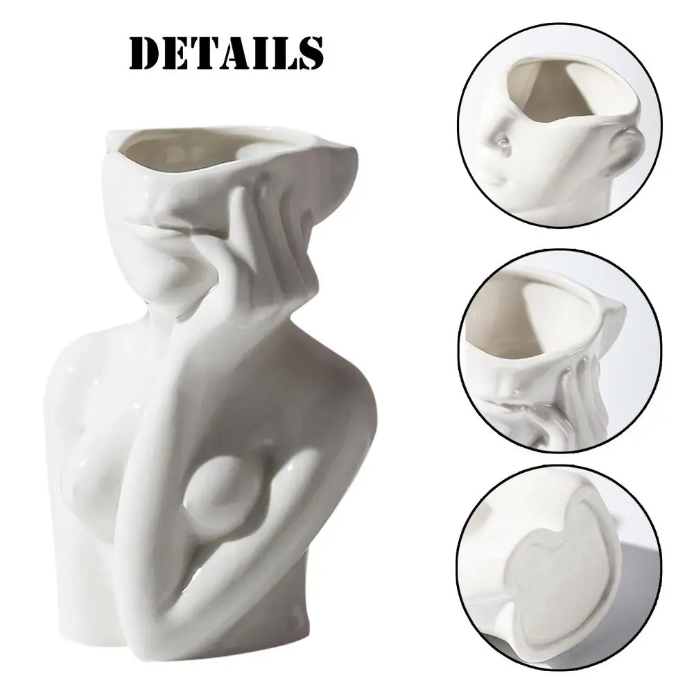 Nordic Ceramic Simulation Human Body Art Vase Sculpture Decoration Home Living Room TV Cabinet Crafts Indoor Vases Accessories