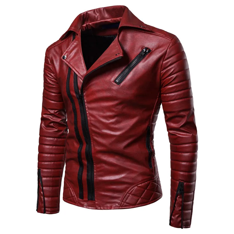 Obique Zipper Motorcycle Leather Jacket Men Stylish Striped Winter Windproof Casaco Masculino PU Leather Jackets Coats Mens