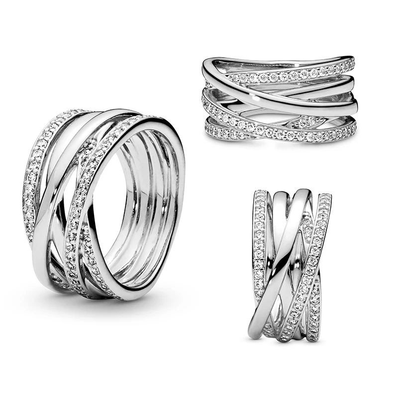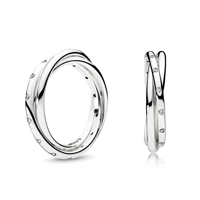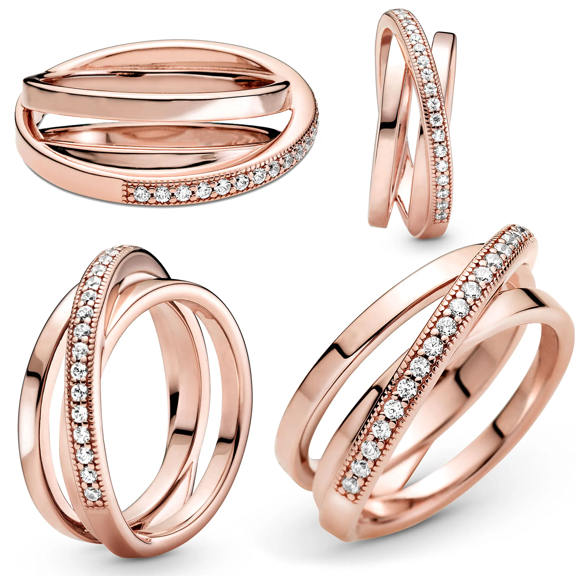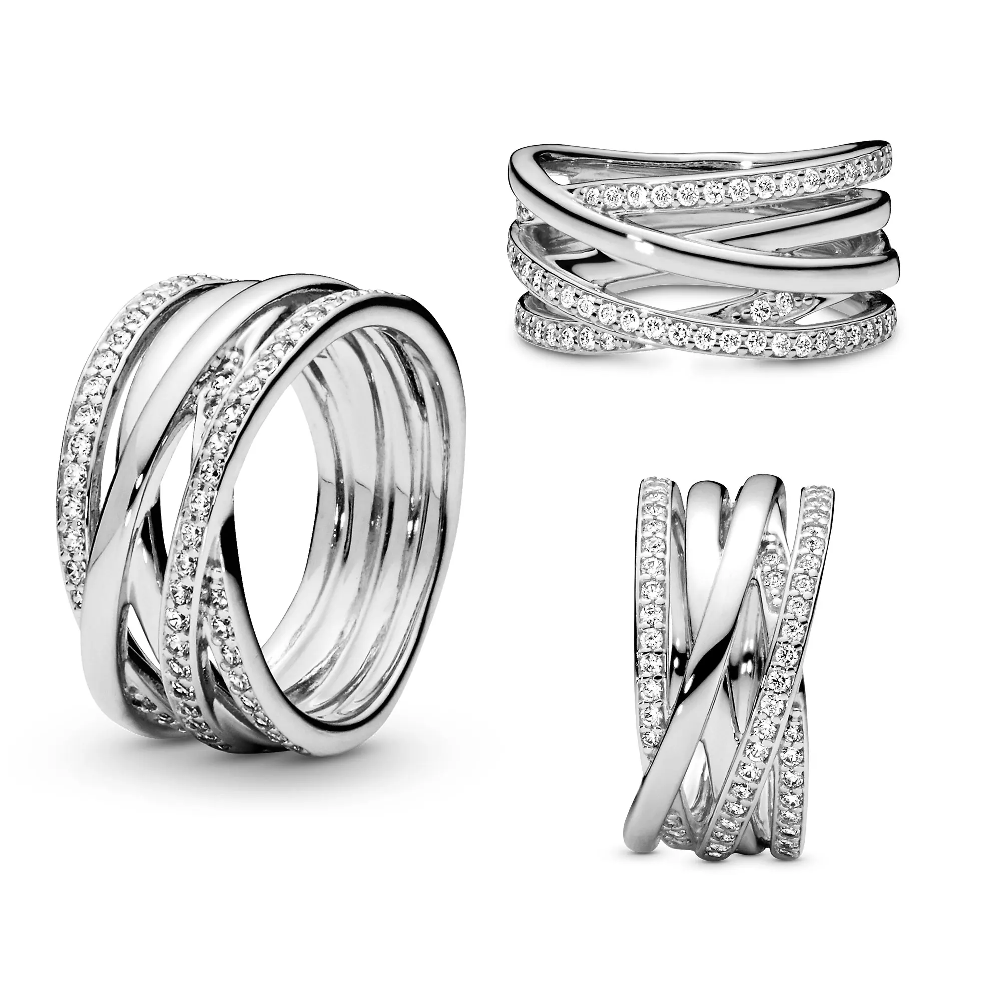 925 Sterling Silver Ring Sparkling & Polished Lines Crossover Party Ring For Women Wedding Triple Band Rings Fine Jewelry Gift