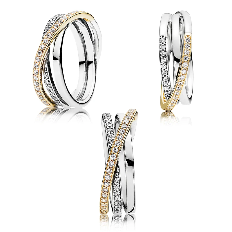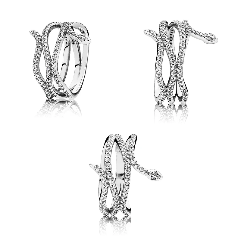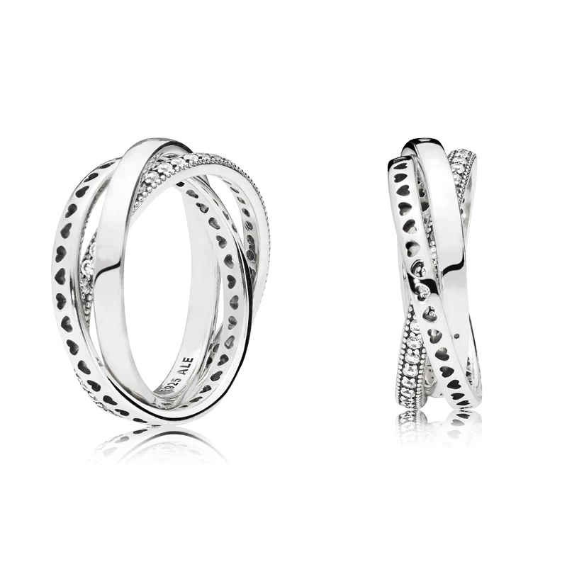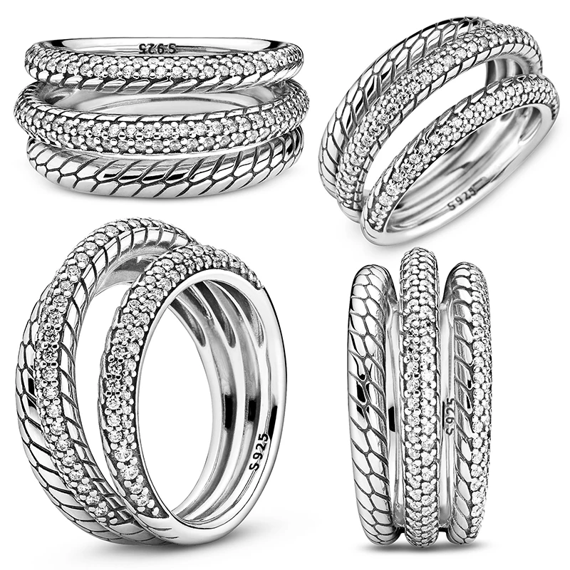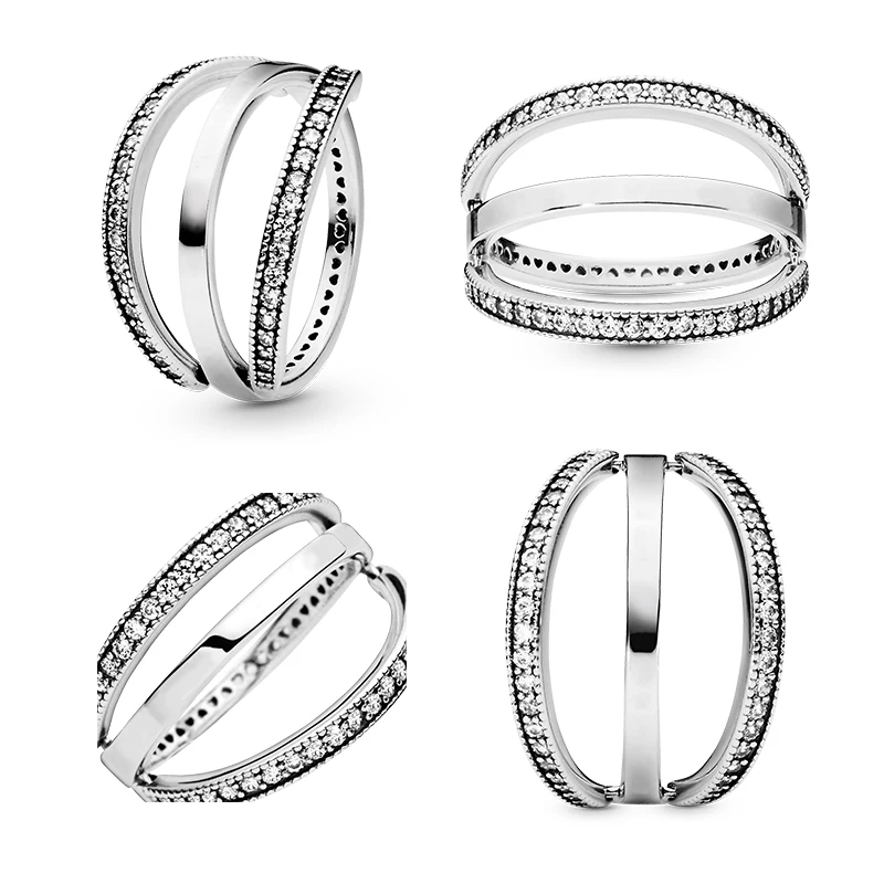 925 Sterling Silver Ring Sparkling & Polished Lines Crossover Party Ring For Women Wedding Triple Band Rings Fine Jewelry Gift