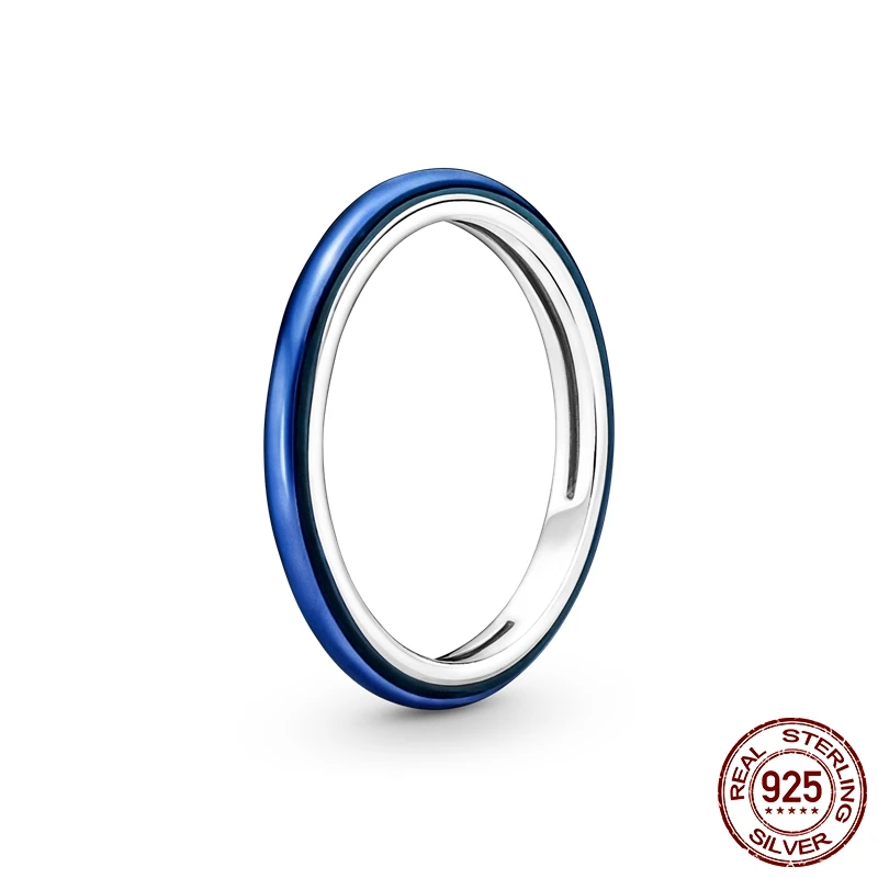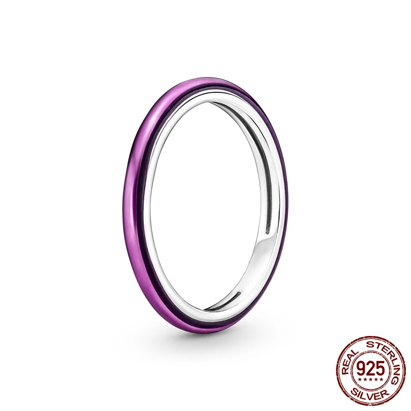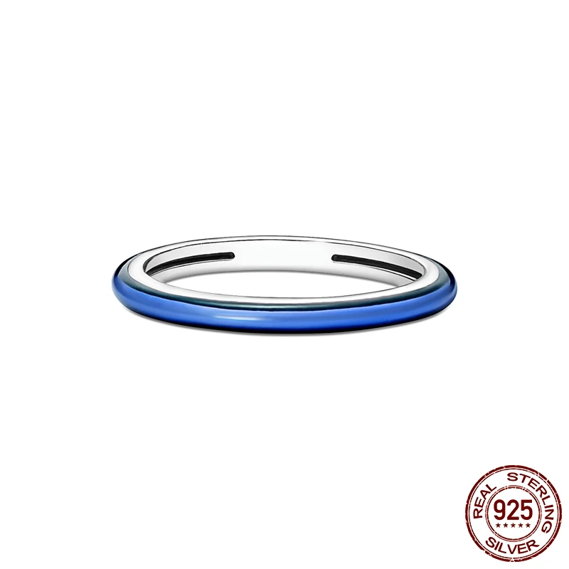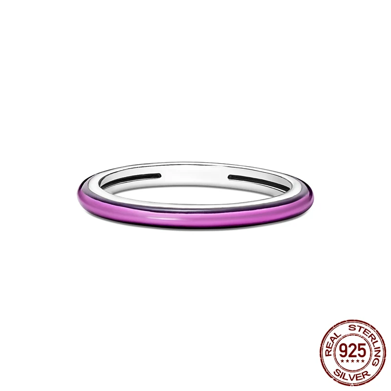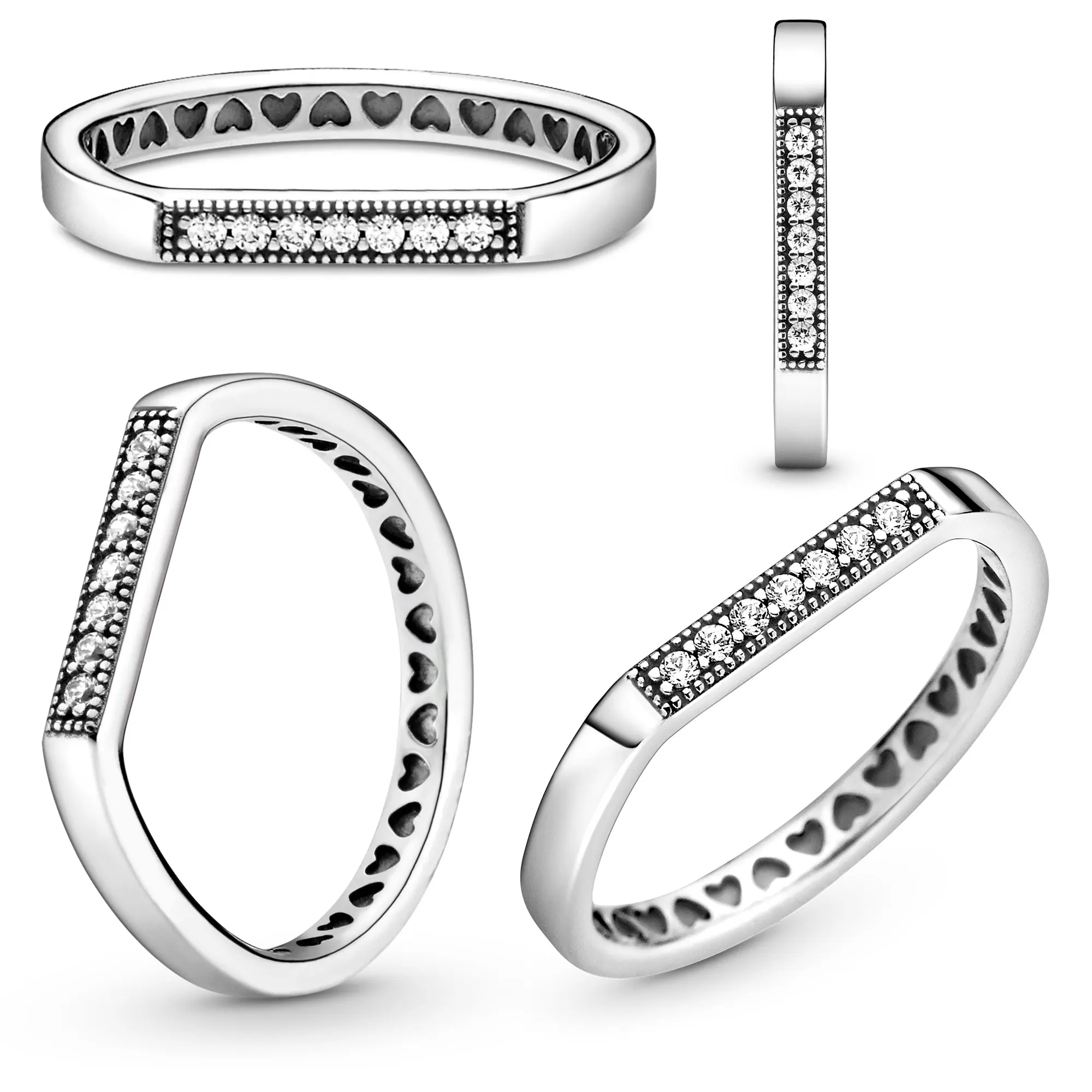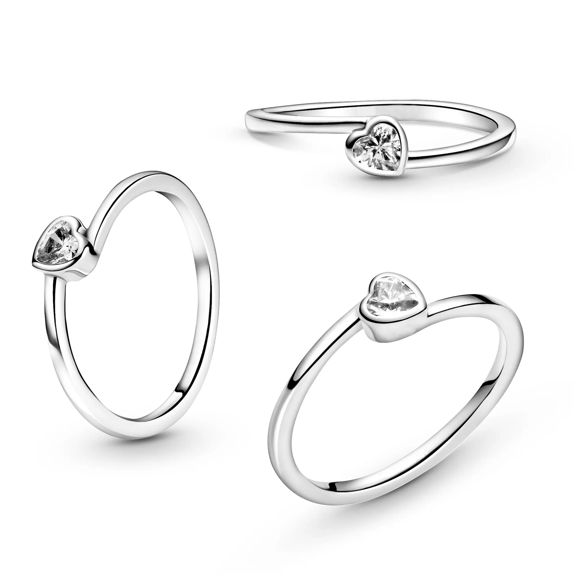 925 Sterling Silver Ring Silver Enamel & Clear With Heart Ring For Women Wedding Party Gift pandora Jewelry