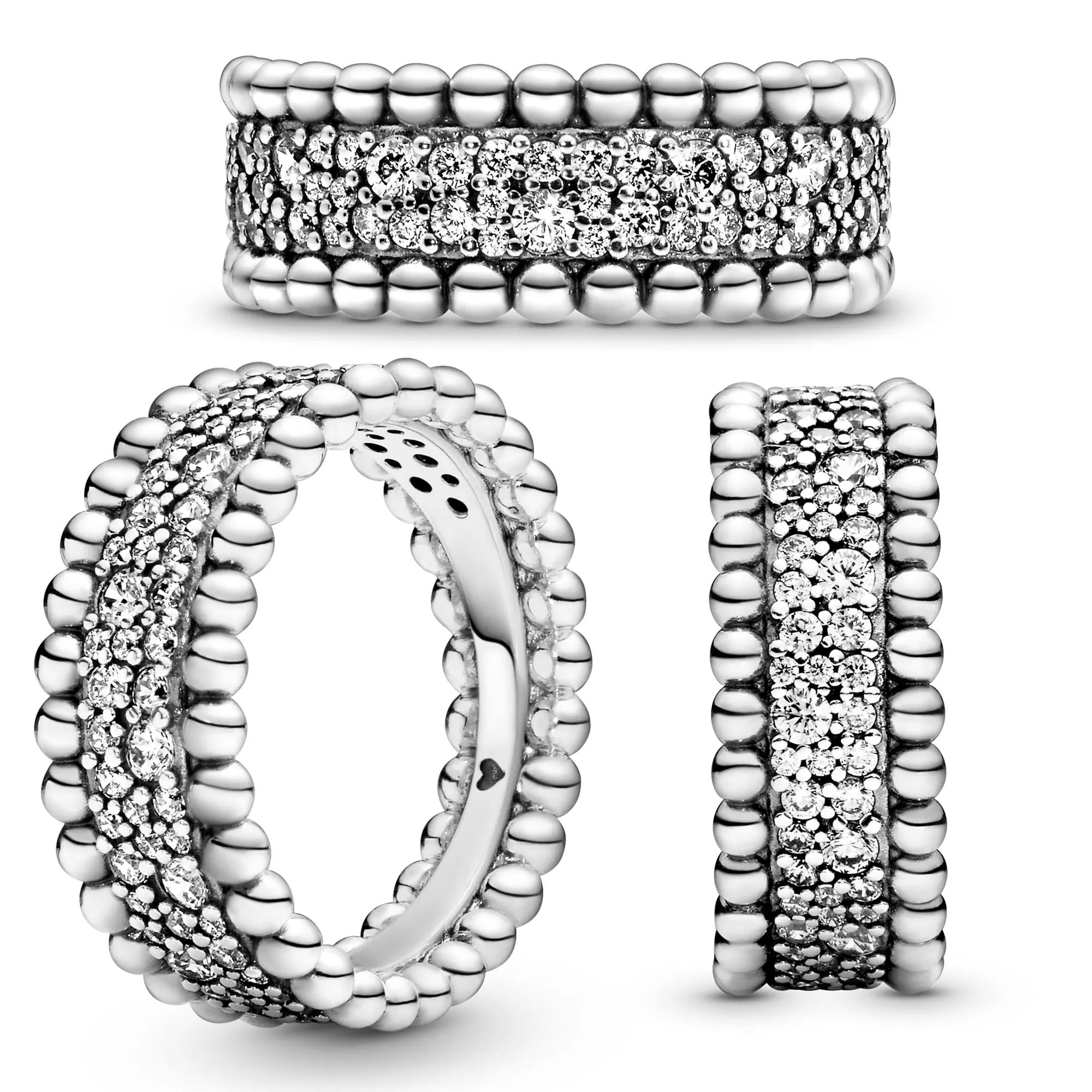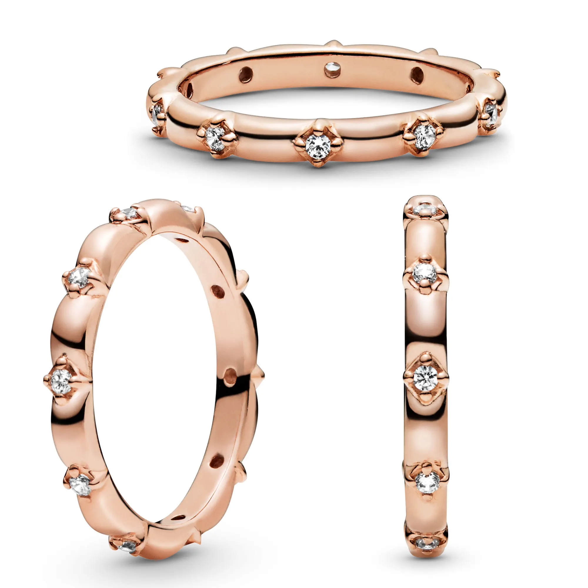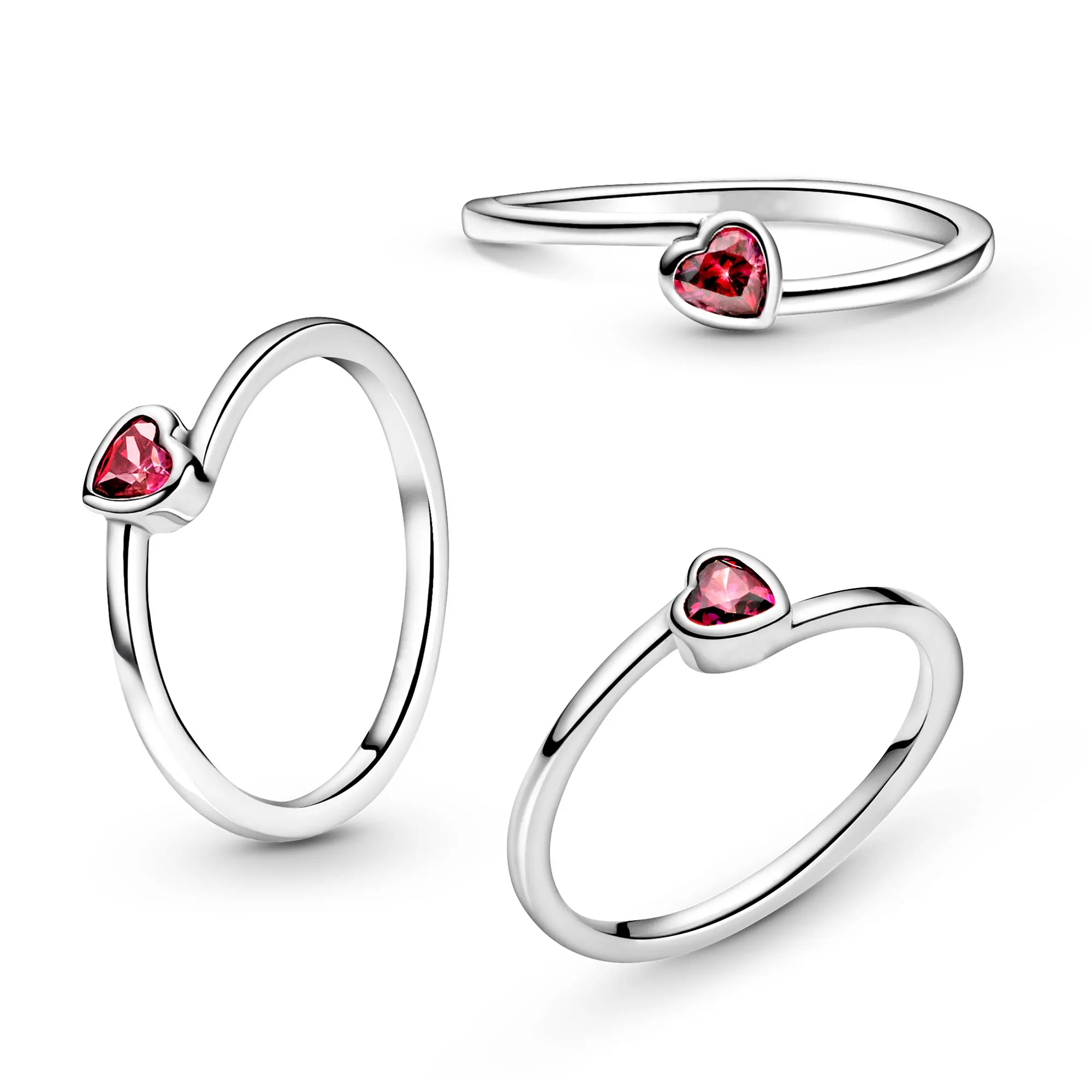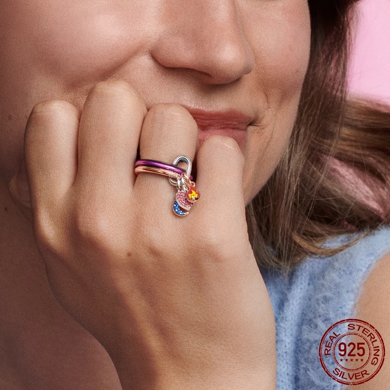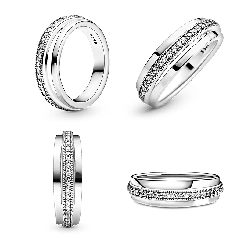 925 Sterling Silver Ring Silver Enamel & Clear With Heart Ring For Women Wedding Party Gift pandora Jewelry