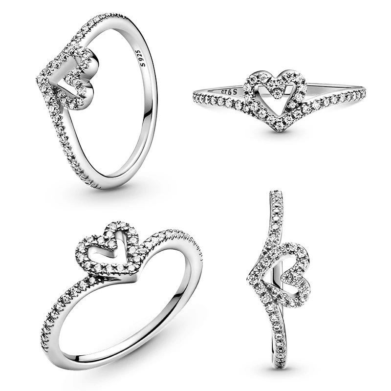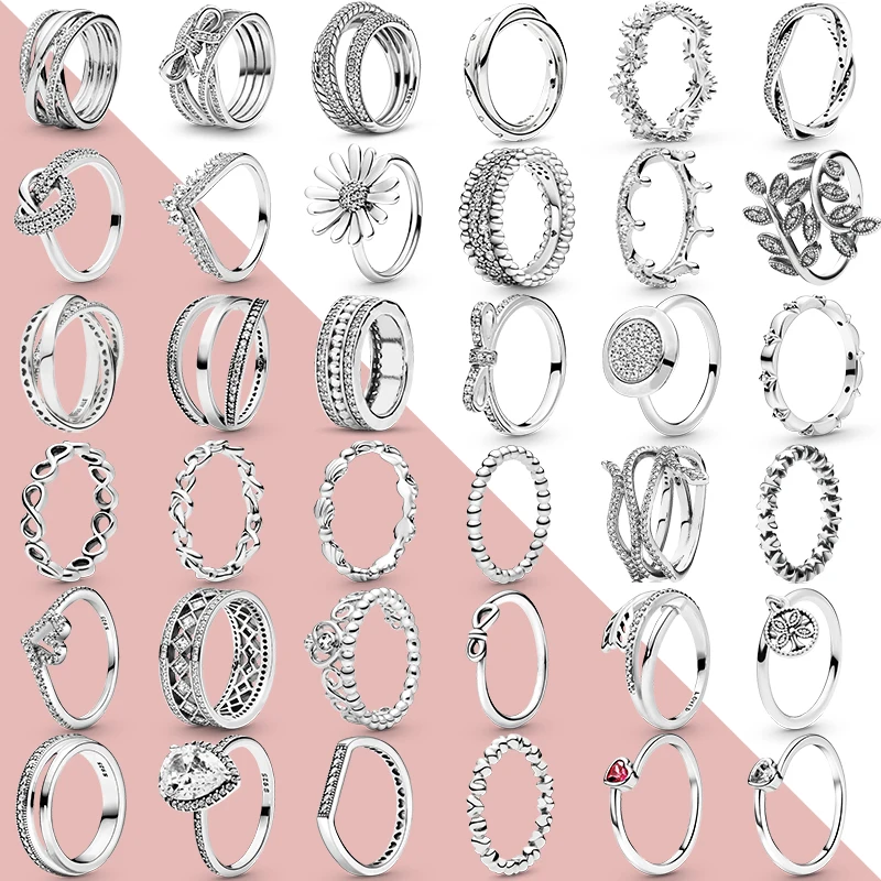 Ring 925 Silver Stackable Rings Infinite Flower Princess Wishbone Heart Rings Women Finger Rings quantity