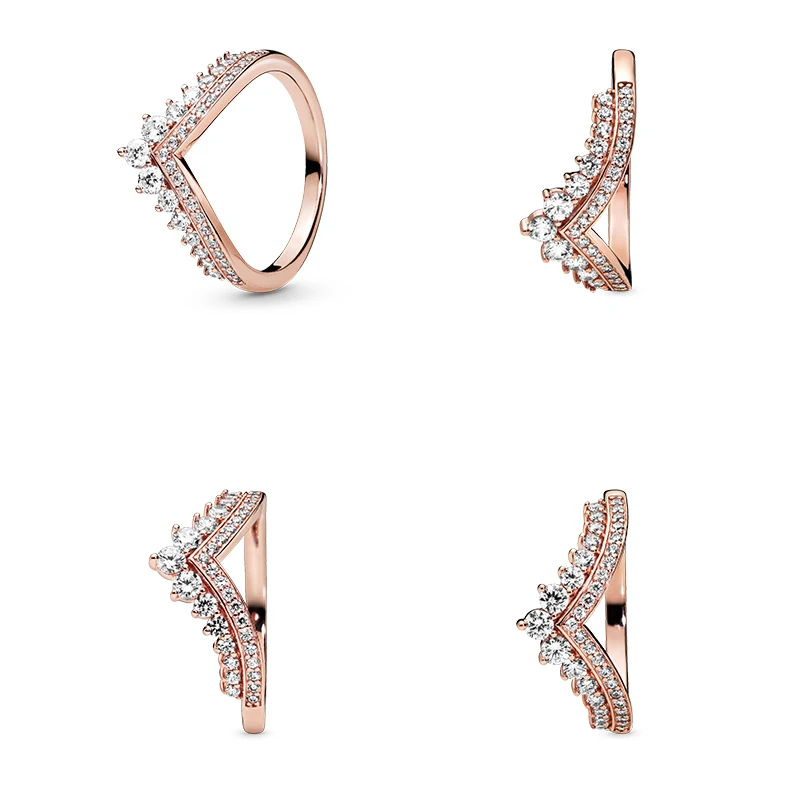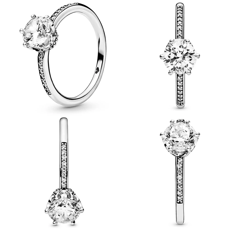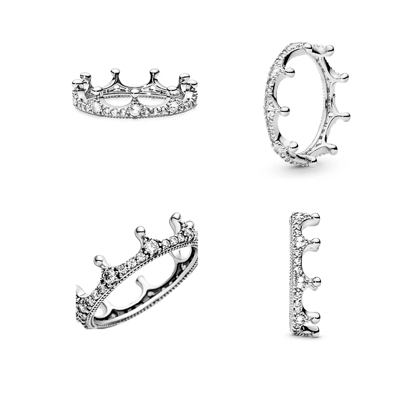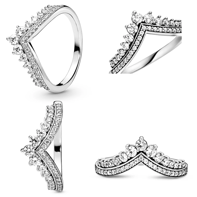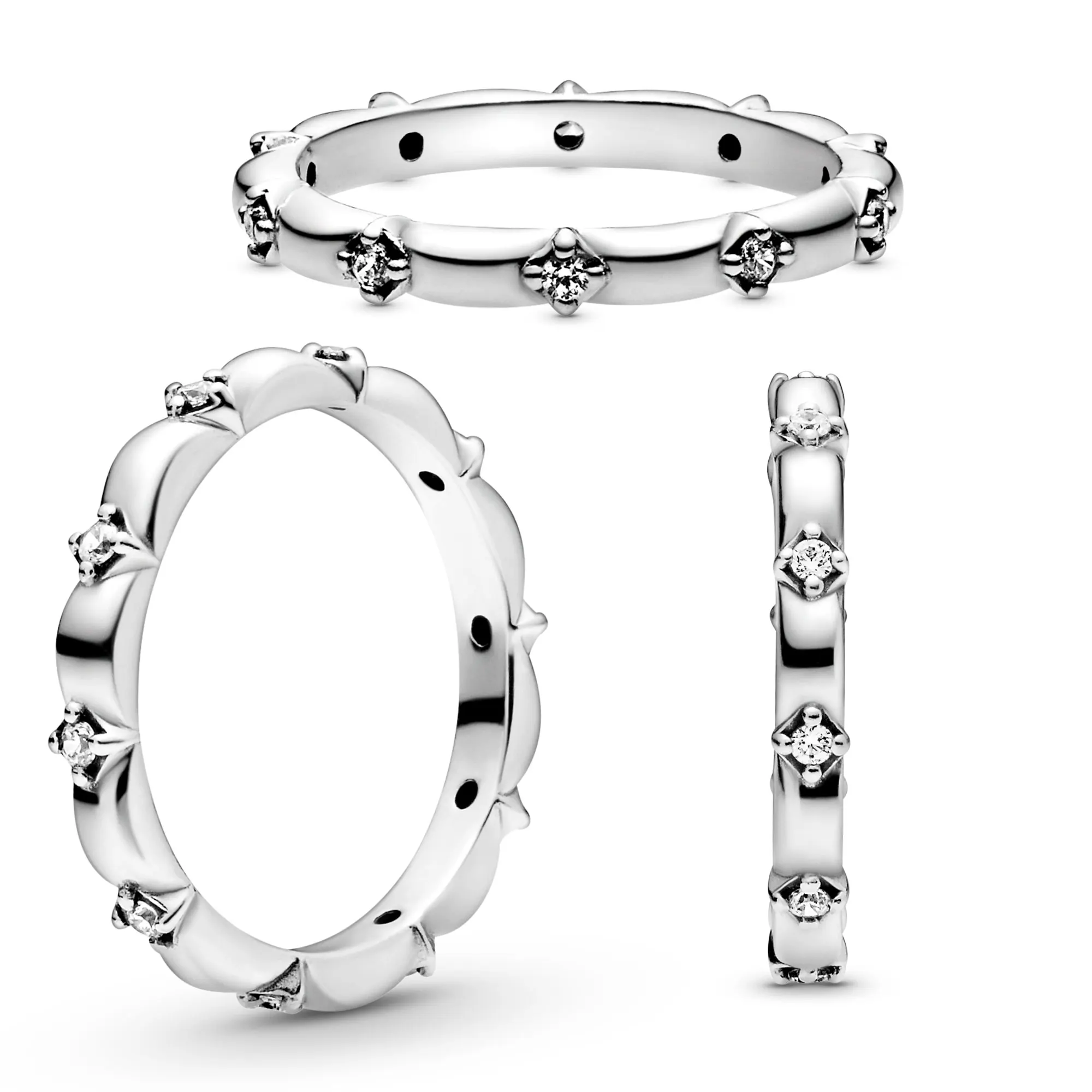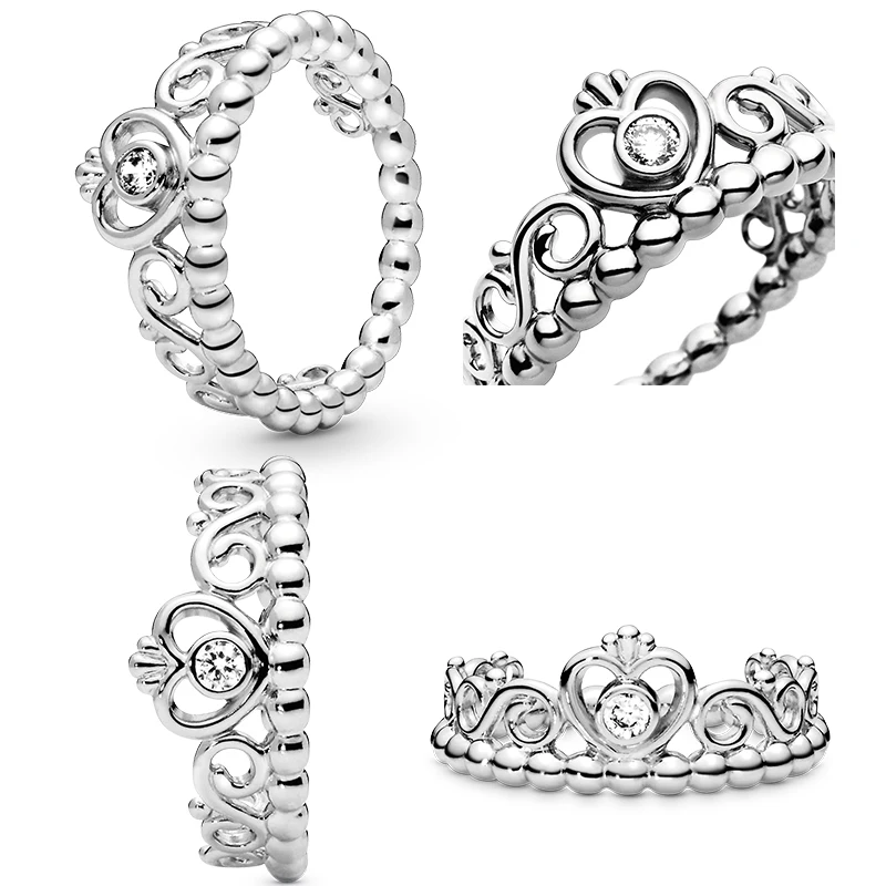 Authentic 925 Sterling Silver Princess Tiara Crown Sparkling Love Heart ,CZ Rings for Women Engagement Jewelry Anniversary