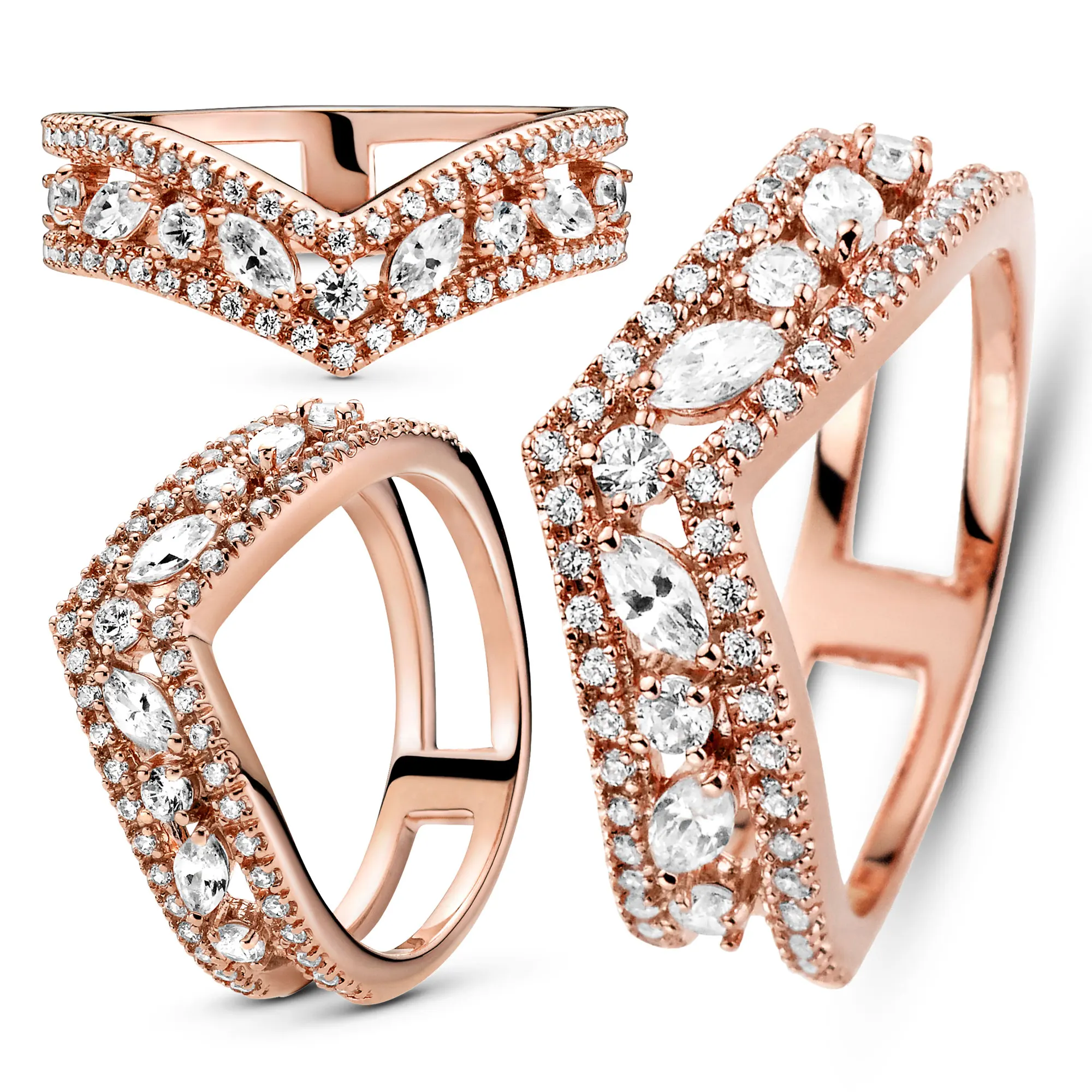 Ring 925 Silver Rings Infinite Flower Sparking Zircon Princess Wishbone Heart Ring Popular Women Rings