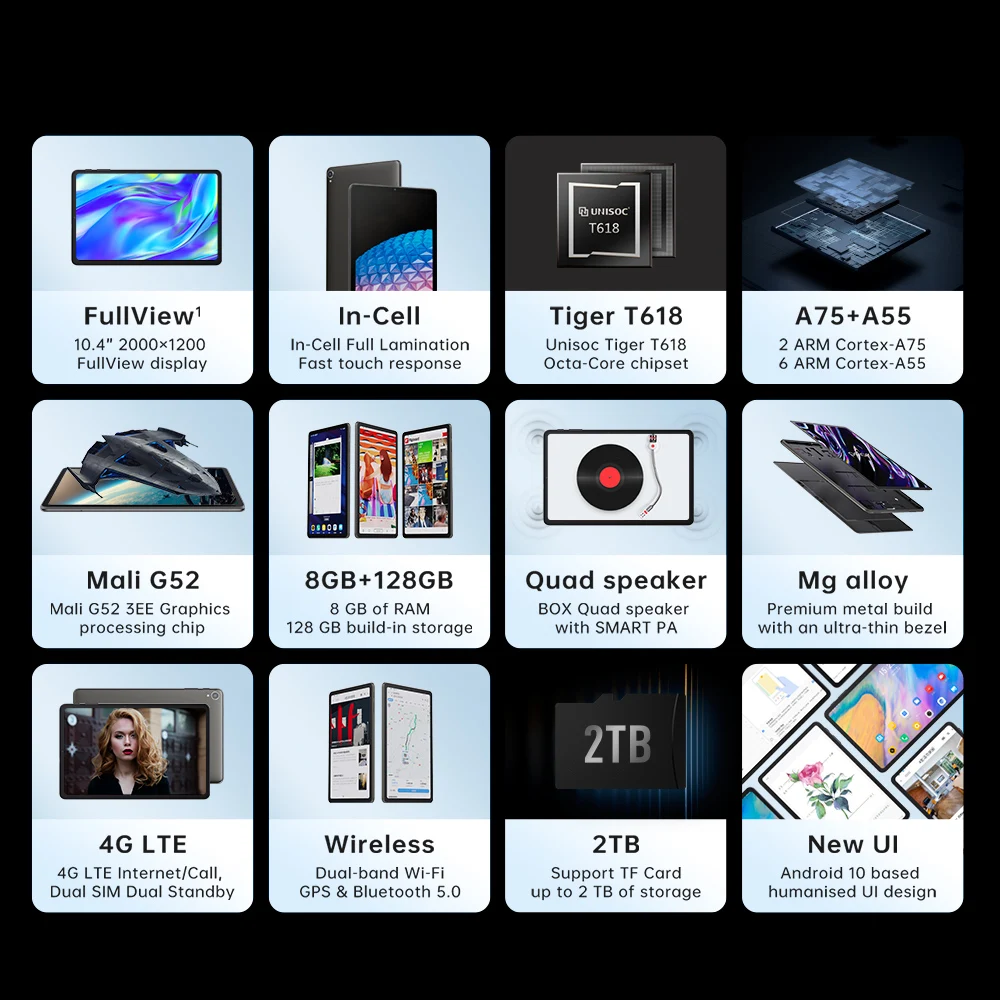 Alldocube iPlay 40 has a 10.4-inch 2000×1200 resolution 2K FullView screen, wide-angle view, and gorgeous high definition, delivering picture-perfect visuals. 8 mm narrow bezel design allows for a higher screen-to-display ratio. High-end In-Cell Full Lamination technology is absolutely incredible at immersing you in. Moreover, it brings fast touch response experience, making every touch pleasurable.
