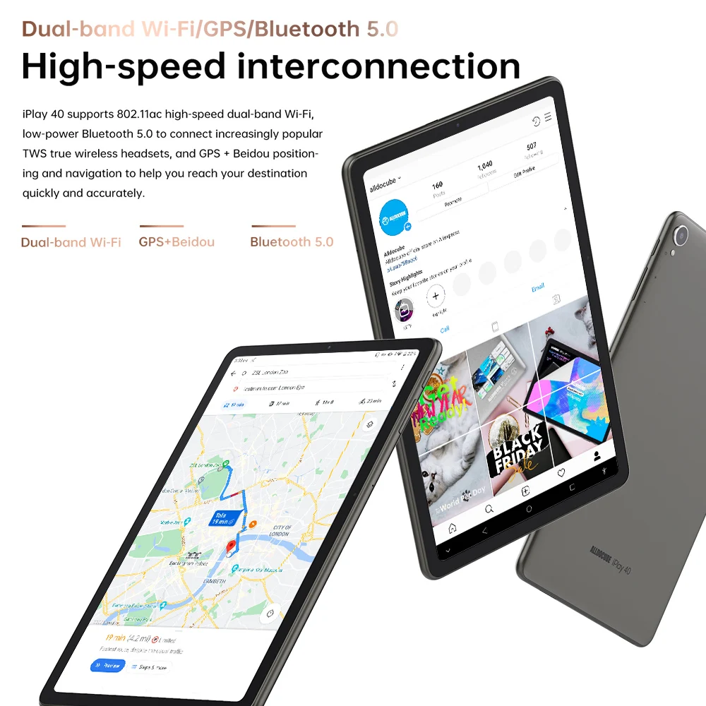 Alldocube iPlay 40 is equipped with a powerful octa-core fast processing SoC from UNISOC, Tiger T618 manufactured in 12nm, includes 2 ARM Cortex-A75 processors capable of reaching 2.0 GHz, six ARM Cortex-A55 processors with a maximum speed of 1.8 GHz. It also supports Android Neural Network API (NNAPI). T618 is not only amazing in performance, but also super power-saving.