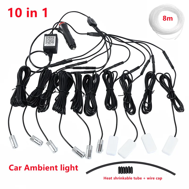 Universal 10 in 1 RGB LED with 8M Interior decoration car fiber optic strip light by App Control 12V decorative atmosphere lamps