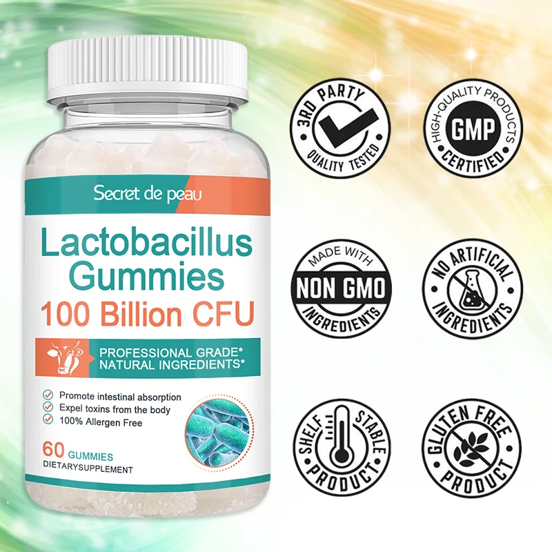 Secret De Peau 100 Billion CFU Lactobacillus Gummies Promote Intestinal Peristalsis,Relieve Constipation Immune System Booster Detox For Women and Men
