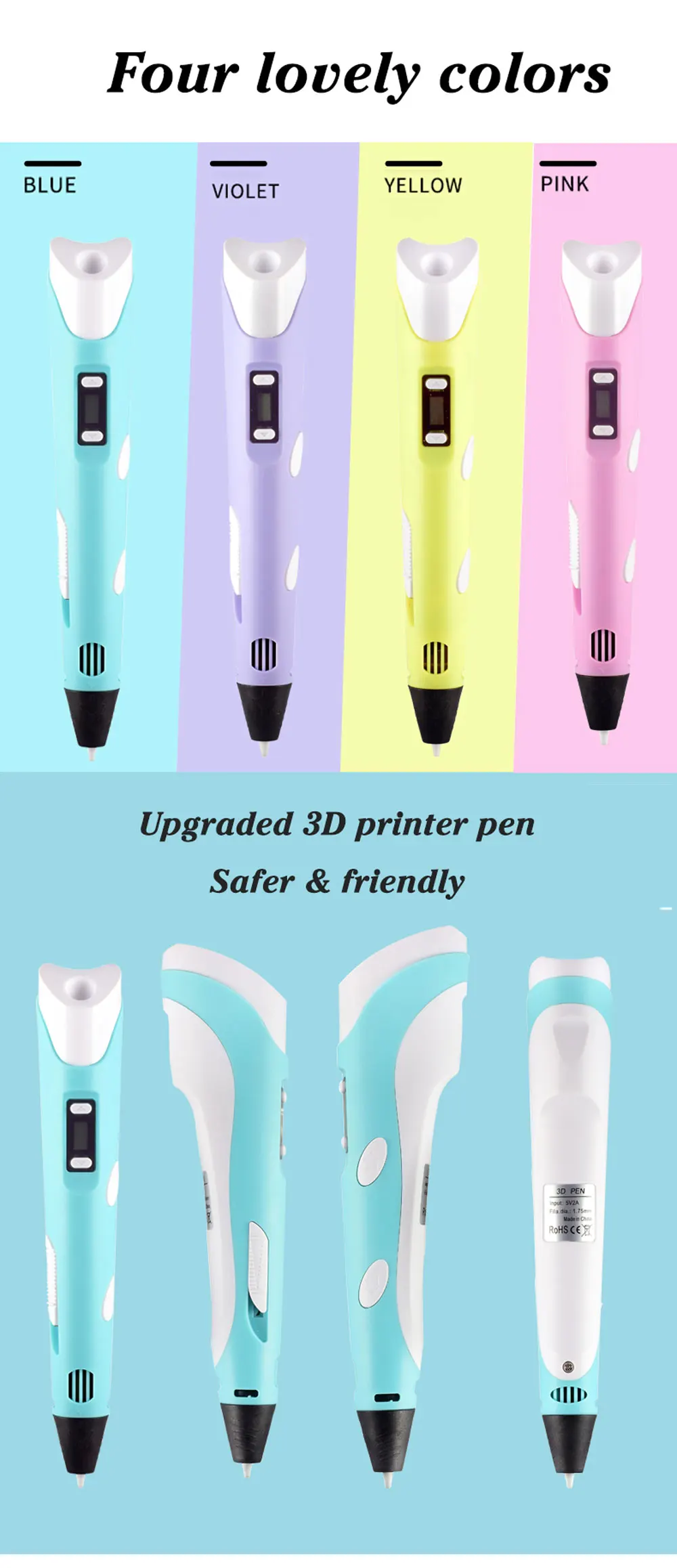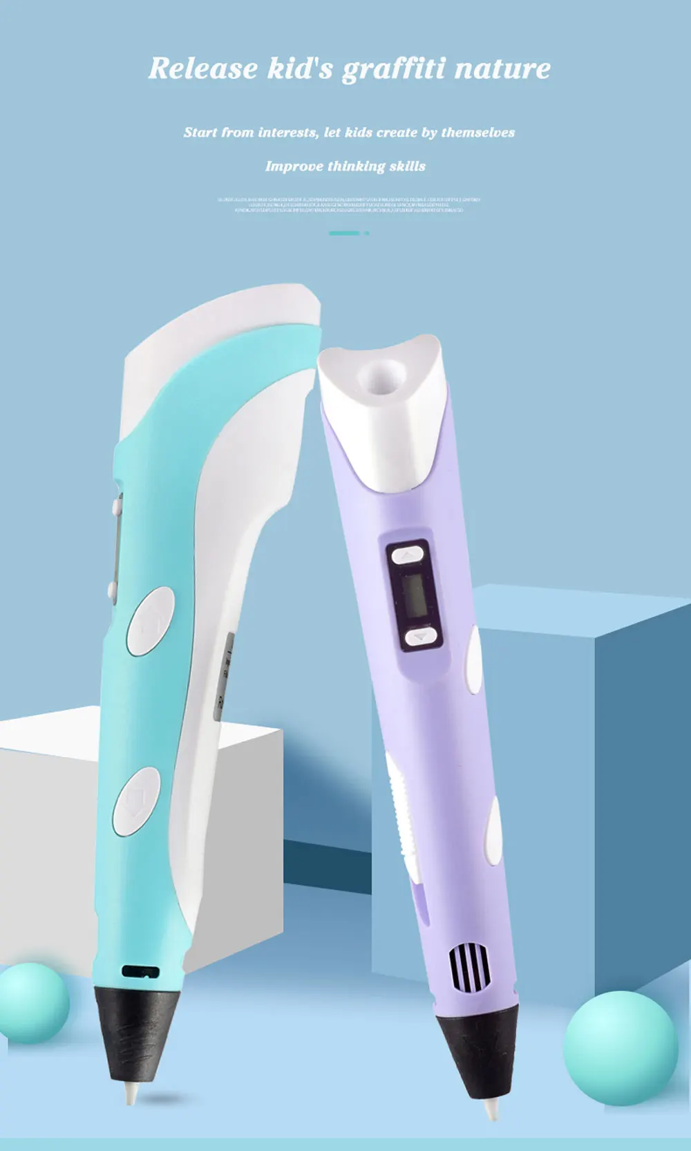 3D Pen Kids DIY Printer Pen Children Drawing Pens With LCD Screen PLA Filament 1.75mm Printing Birthday Christmas Gift For Kids