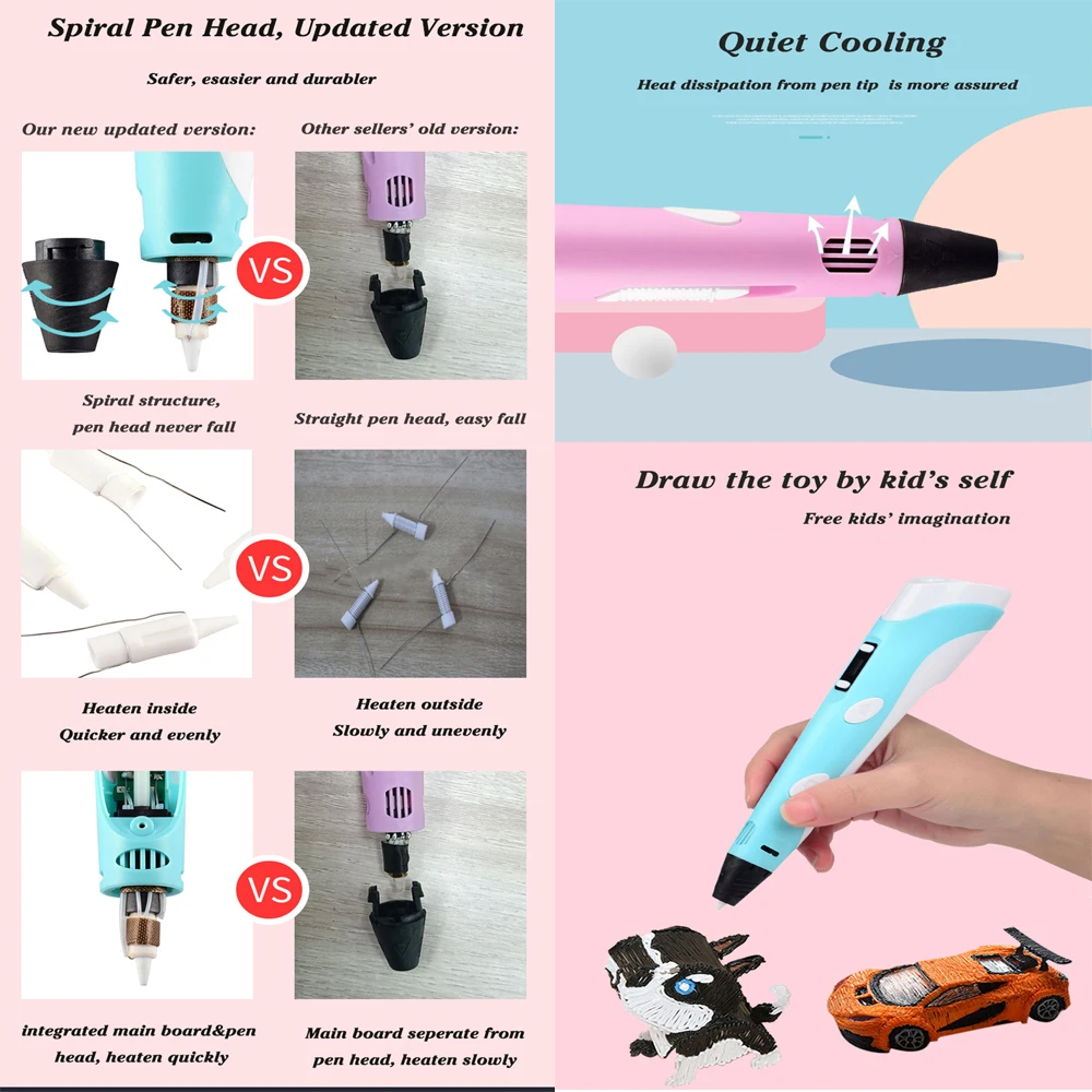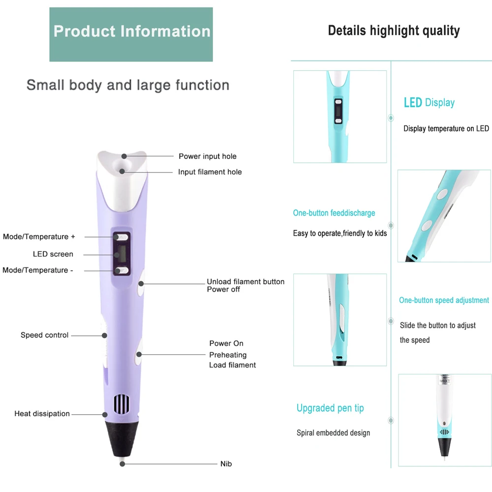 Feature 2: The second generation pen can use ABSPLA consumables, PLA is colorless, odorless, non-toxic, healthy and environmentally friendly;