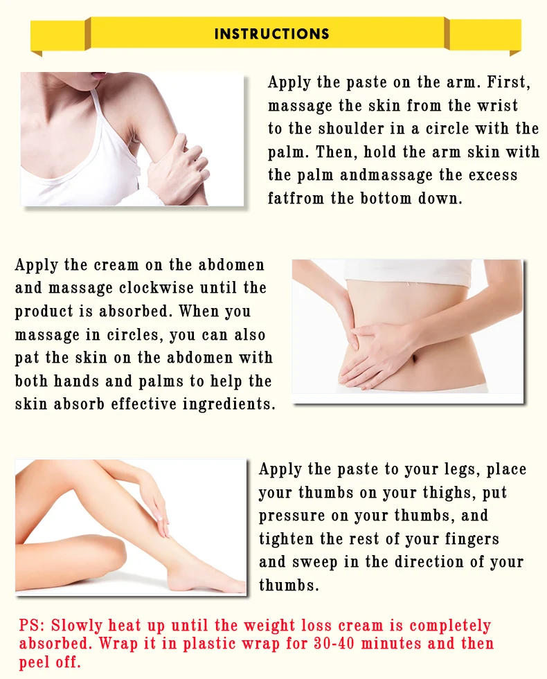 1.Apply a proper amount of slimming cream to the area to be massaged.