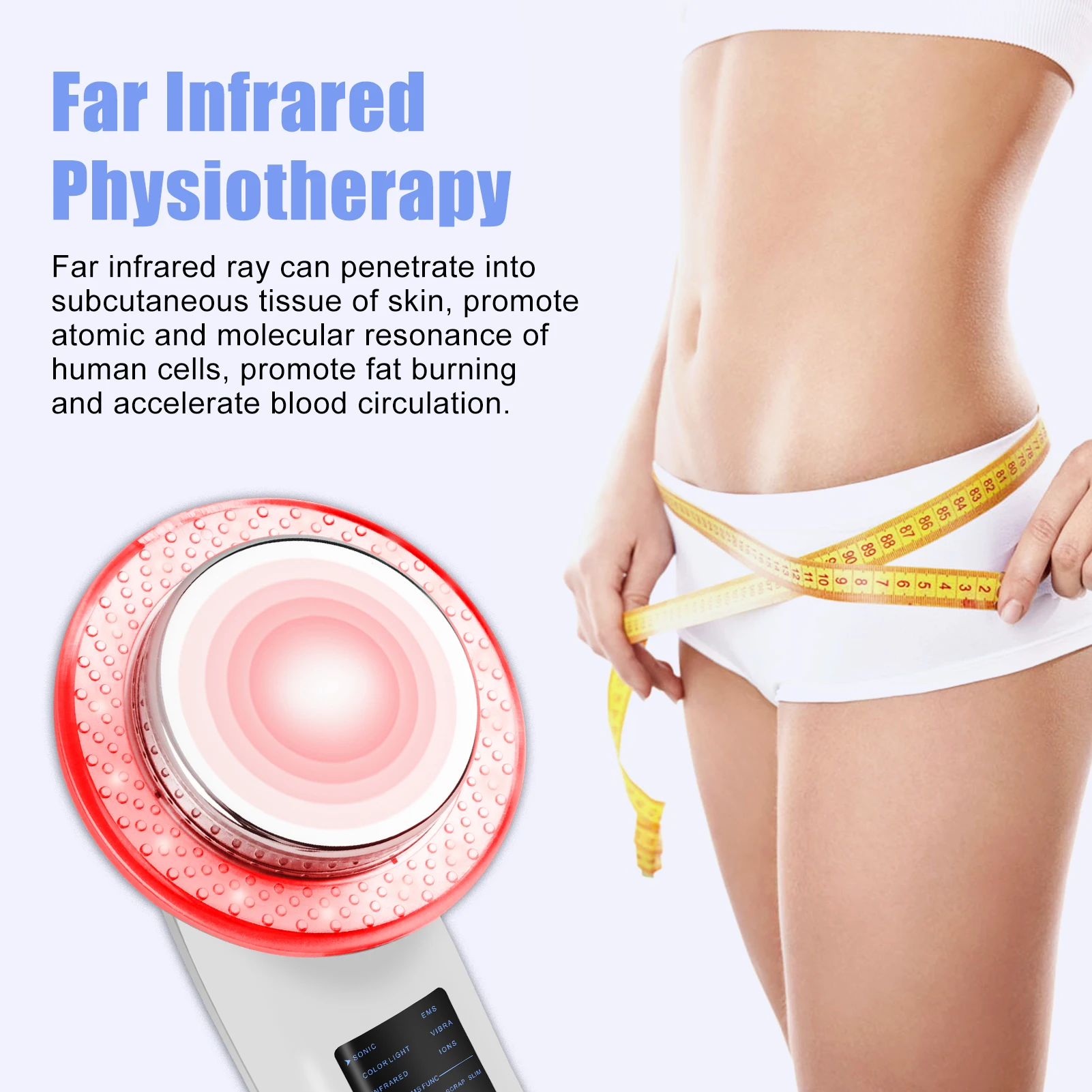 5.This device adopts 1Mhz ultrasound and infrared energy to massage and treat skin effectively, as well as perform slimming ultrasonic massage to sculpt body contour, eliminate excess fat, tone the muscle, stimulate healthy body function through cell rejuvenation and body metabolism rehabilitation.