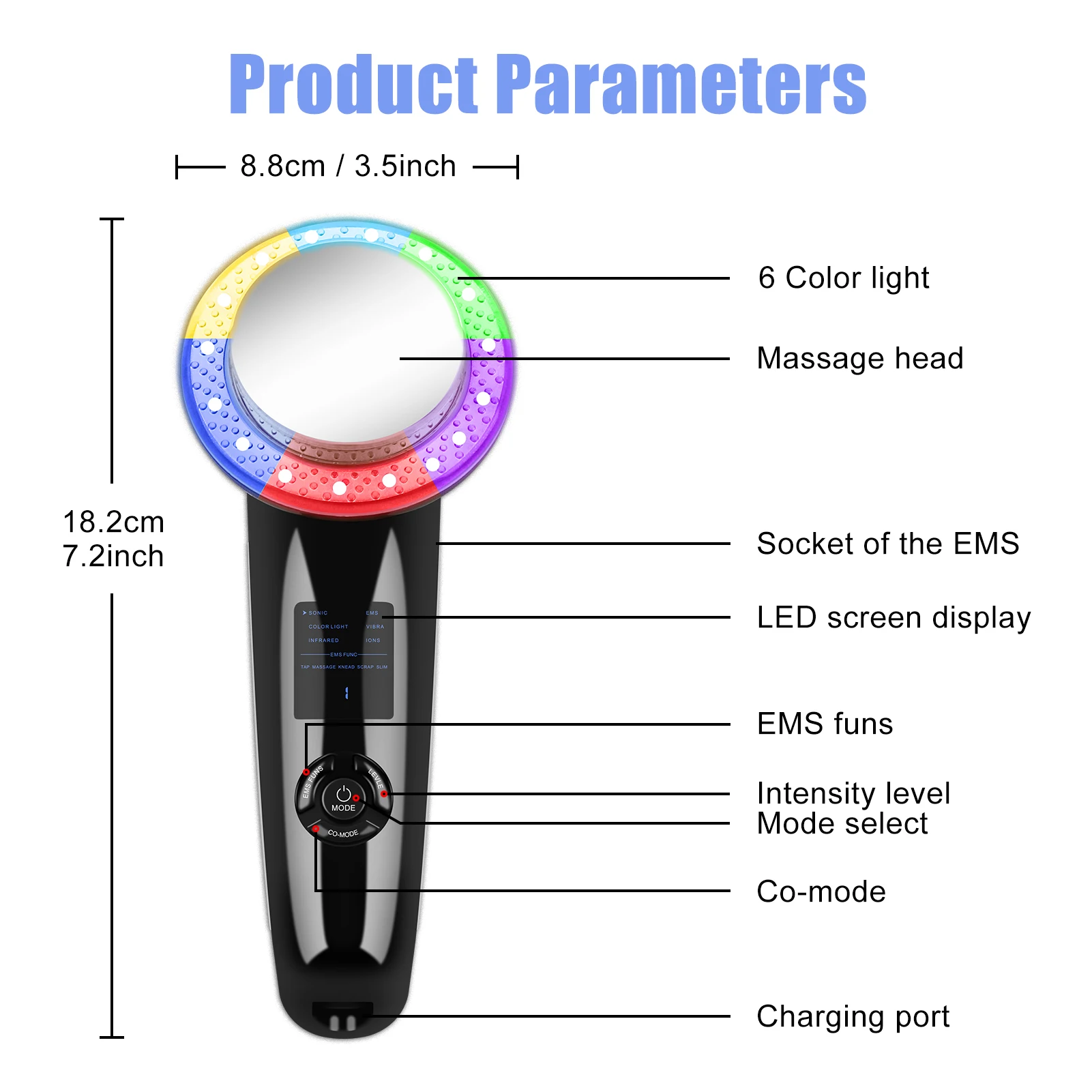 6.This instrument can simultaneously perform ultrasonic, infrared and micro-current skin and body therapy.
