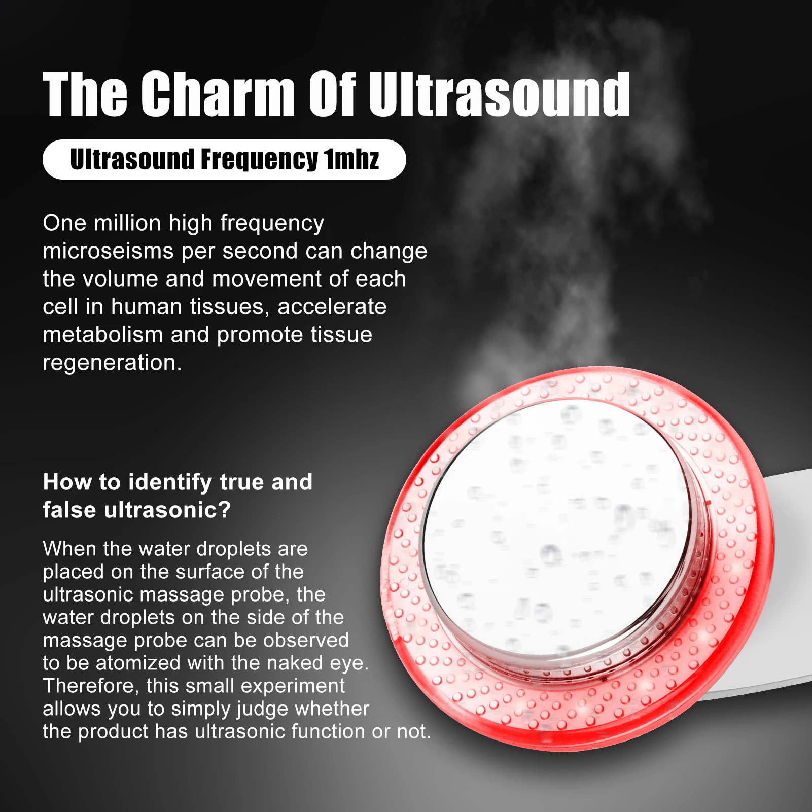 5.This device adopts 1Mhz ultrasound and infrared energy to massage and treat skin effectively, as well as perform slimming ultrasonic massage to sculpt body contour, eliminate excess fat, tone the muscle, stimulate healthy body function through cell rejuvenation and body metabolism rehabilitation.