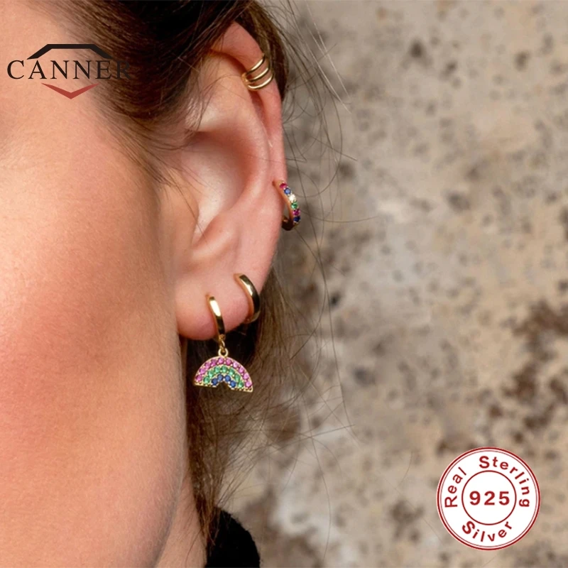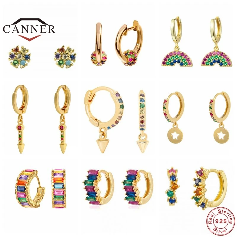 CANNER Hoop Earrings Black Panther Moon Star Cross 925 Sterling Silver CZ Huggie Earring For Women Aros Kiwi Pendientes Brincos