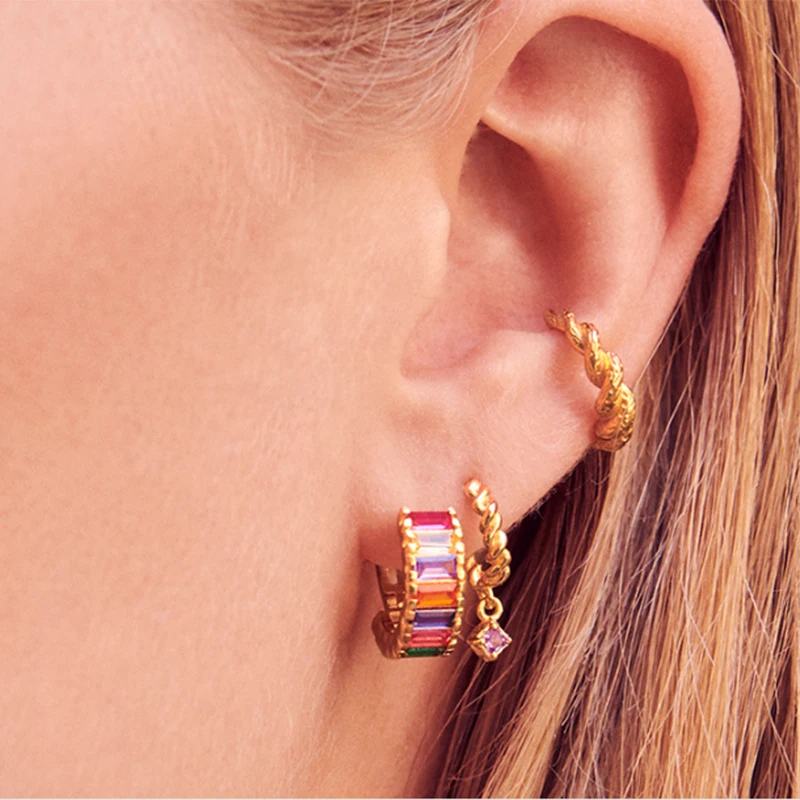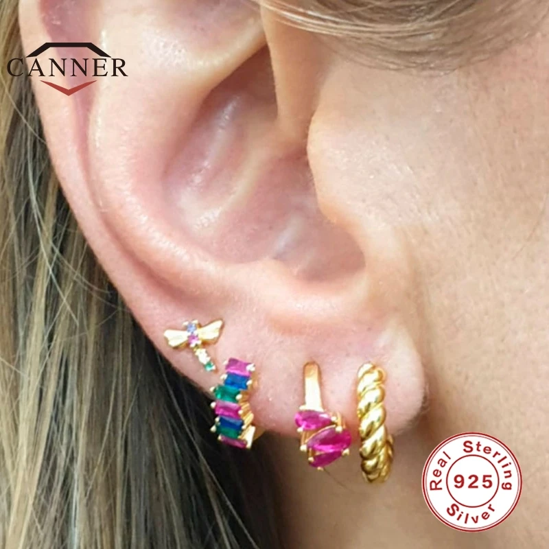 925 Sterling Silver Pendients Plata Colorful Zircon Irregular Hoop Earrings for Women Piercing Huggie Earring Jewelry quantity
