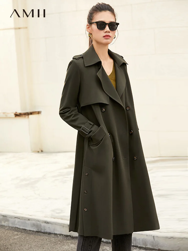 Amii Minimalism Autumn Winter Fashion Women's Trench Coat Causal Solid Lapel Double Breasted Women's Windbreaker
