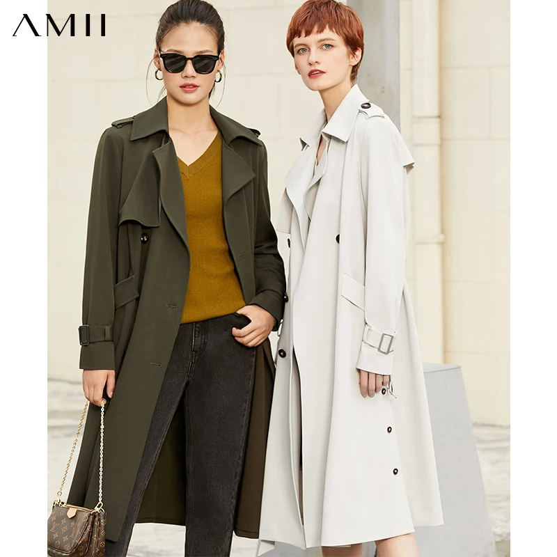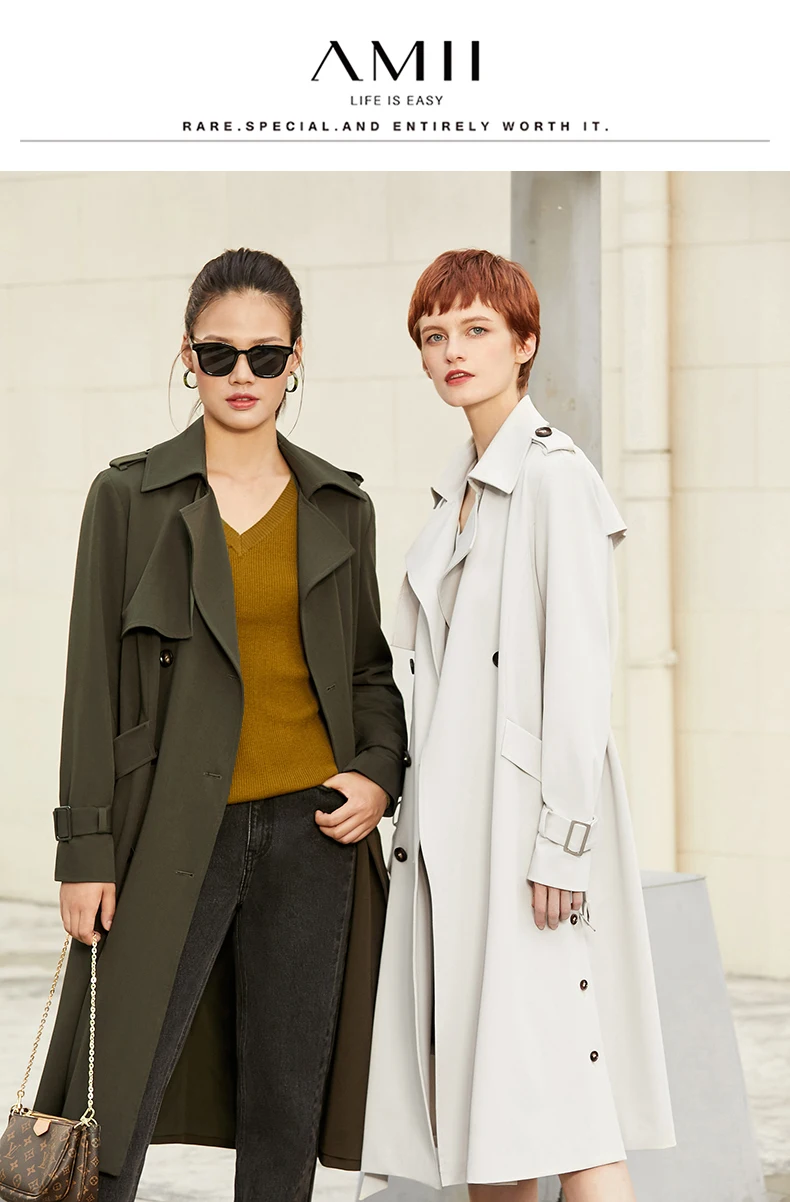 Amii Minimalism Autumn Winter Fashion Women's Trench Coat Causal Solid Lapel Double Breasted Women's Windbreaker quantity