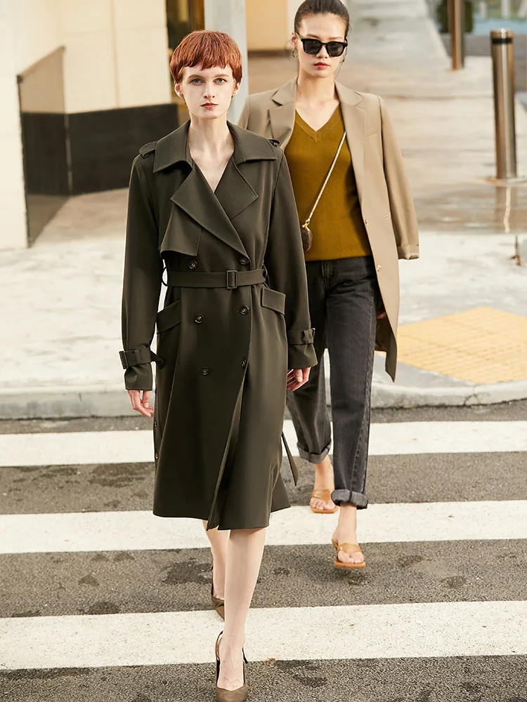 European American Top Quality Autumn spring Trench Coat women Plus Size Long Coat Simple Chic Classic Female Windbreaker