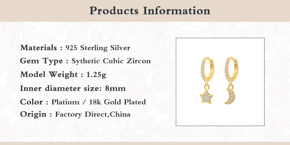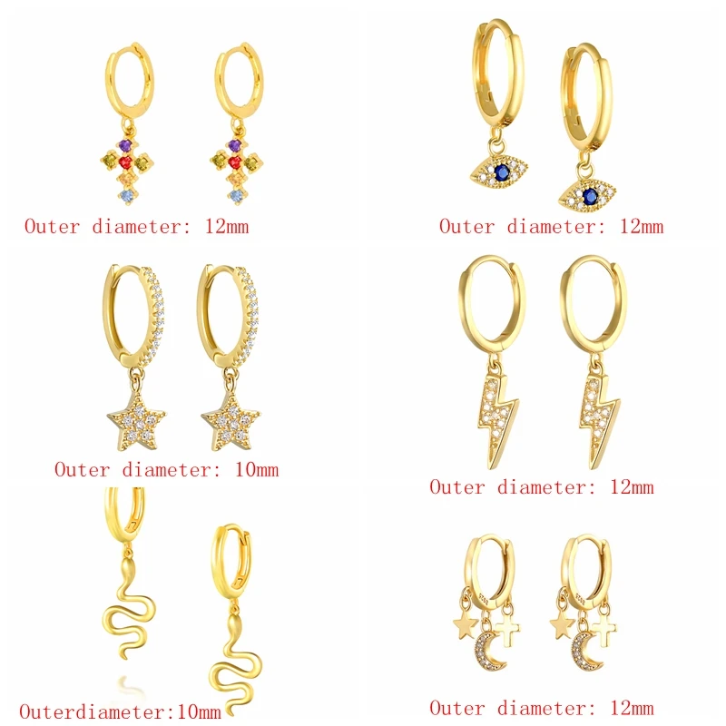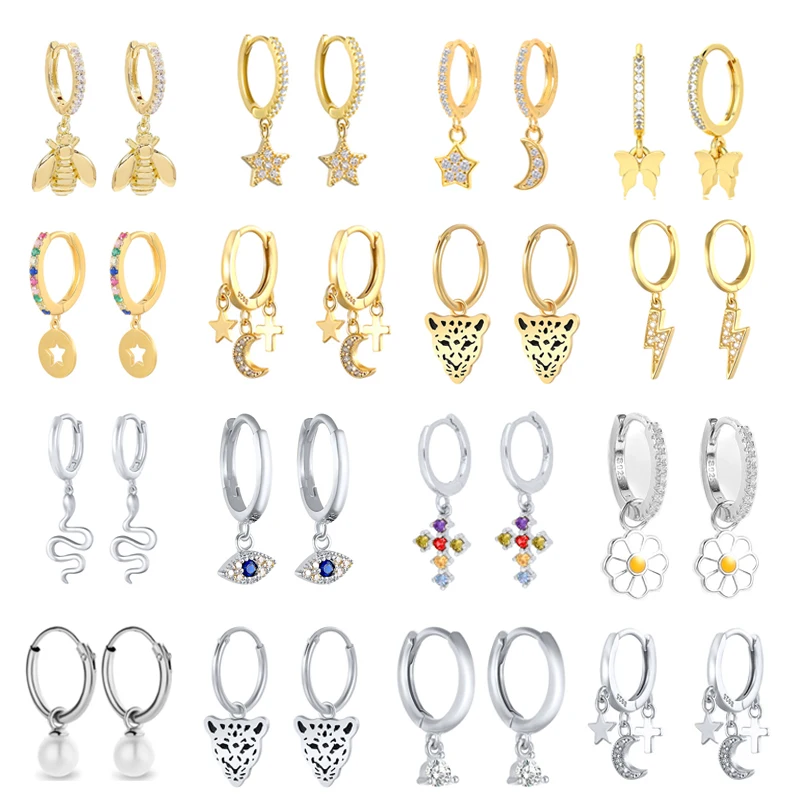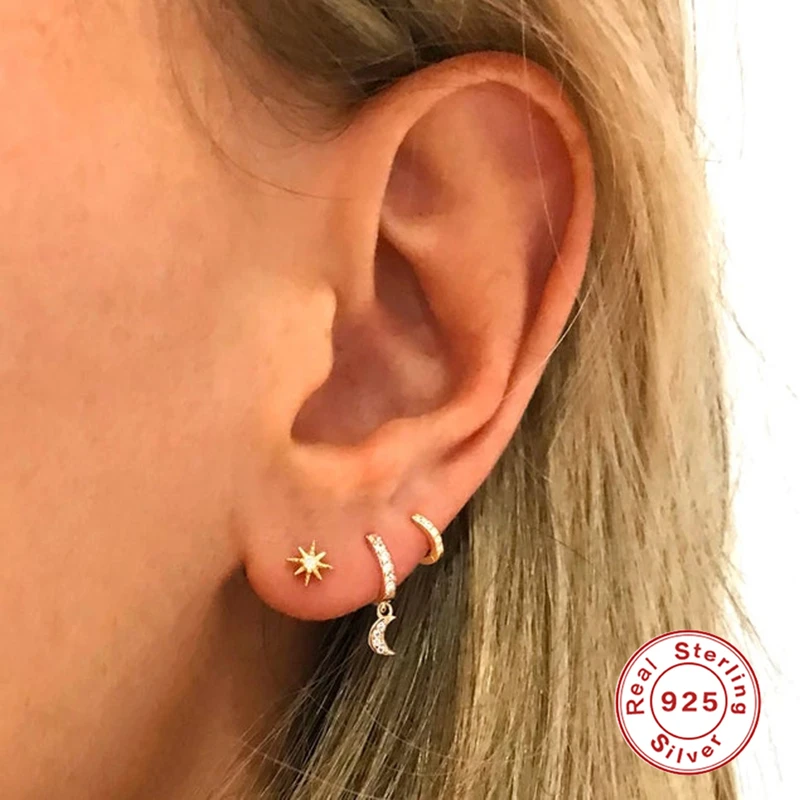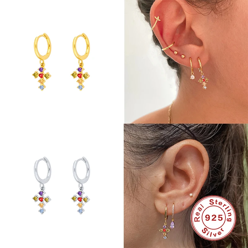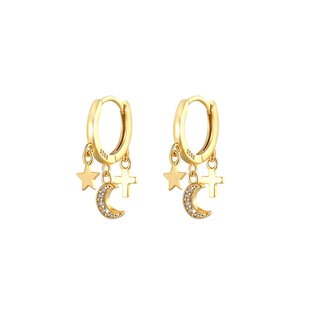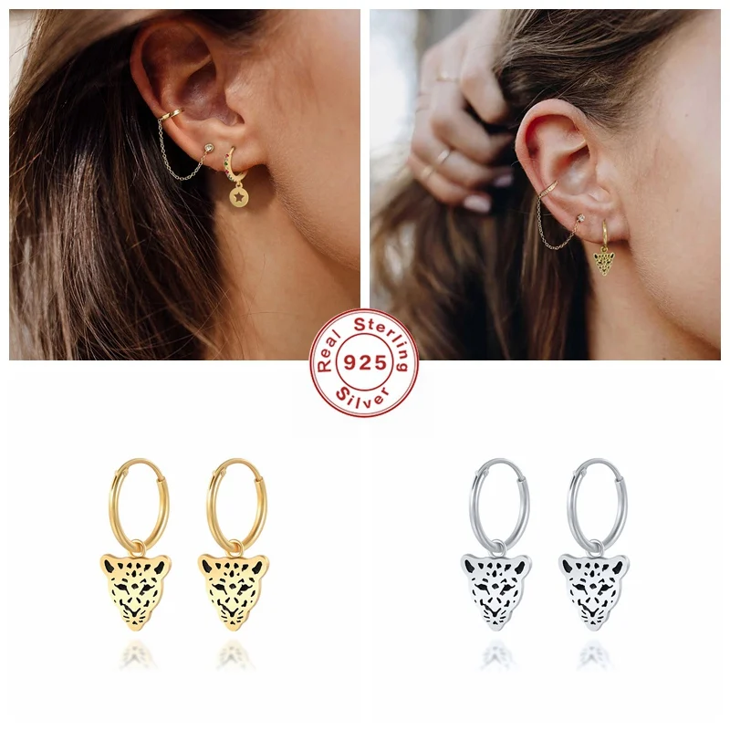 CANNER Hoop Earrings Black Panther Moon Star Cross 925 Sterling Silver CZ Huggie Earring For Women Aros Kiwi Pendientes Brincos