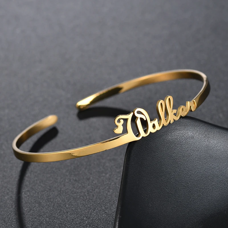 Customized Nameplate Name Bracelet Personalized Custom Cuff Bangles Women Men Rose Gold Stainless Steel Jewelry